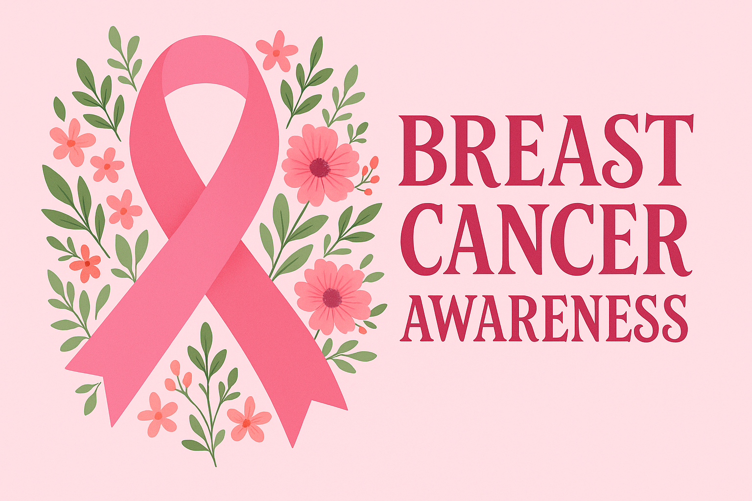 Breast Cancer Awareness Promotional Graphic with Pink Ribbon