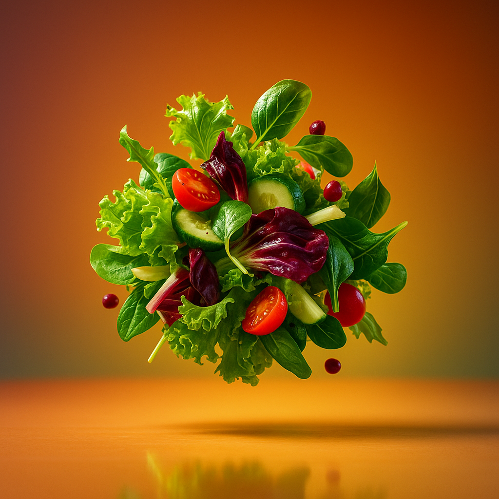Dynamic Green Salad Still Life with Realistic Aesthetic