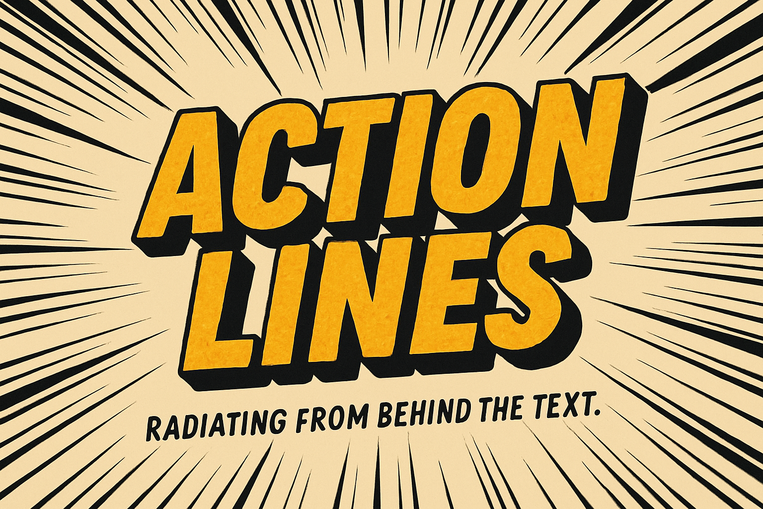 Vibrant graphic showcasing bold typography with action lines radiating from the background, ideal for comic-style designs or promotional material.