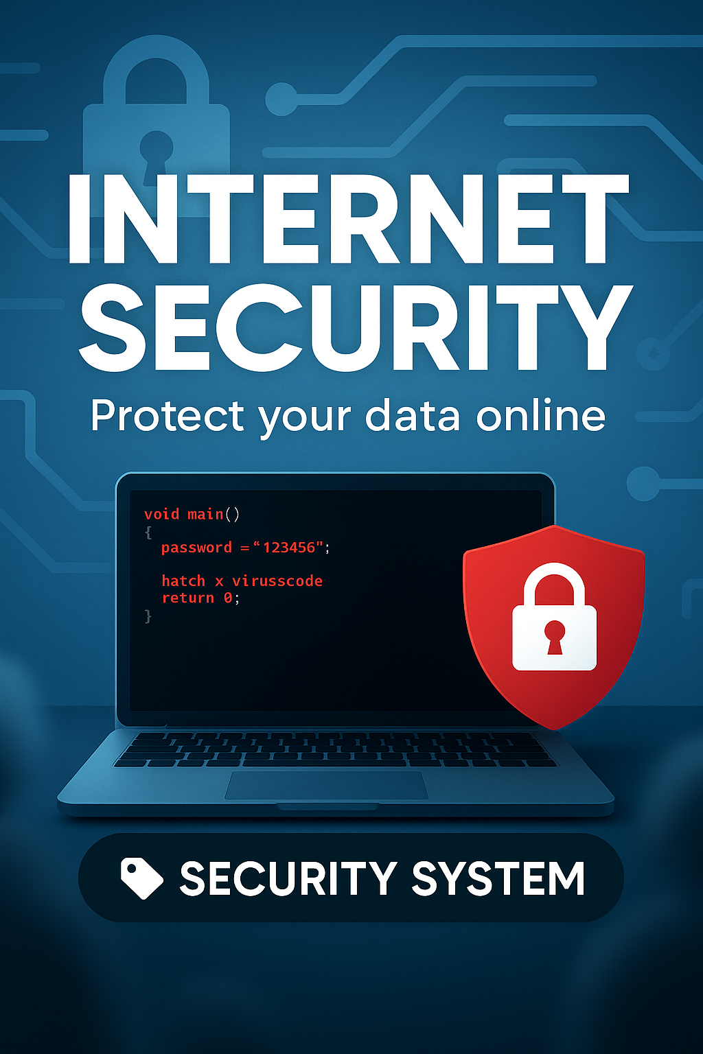 /Collection: /by davooda/Type: PNG/A visually appealing graphic emphasizing internet security, featuring a laptop displaying code and a padlock icon, ideal for cybersecurity promotions or educational content.