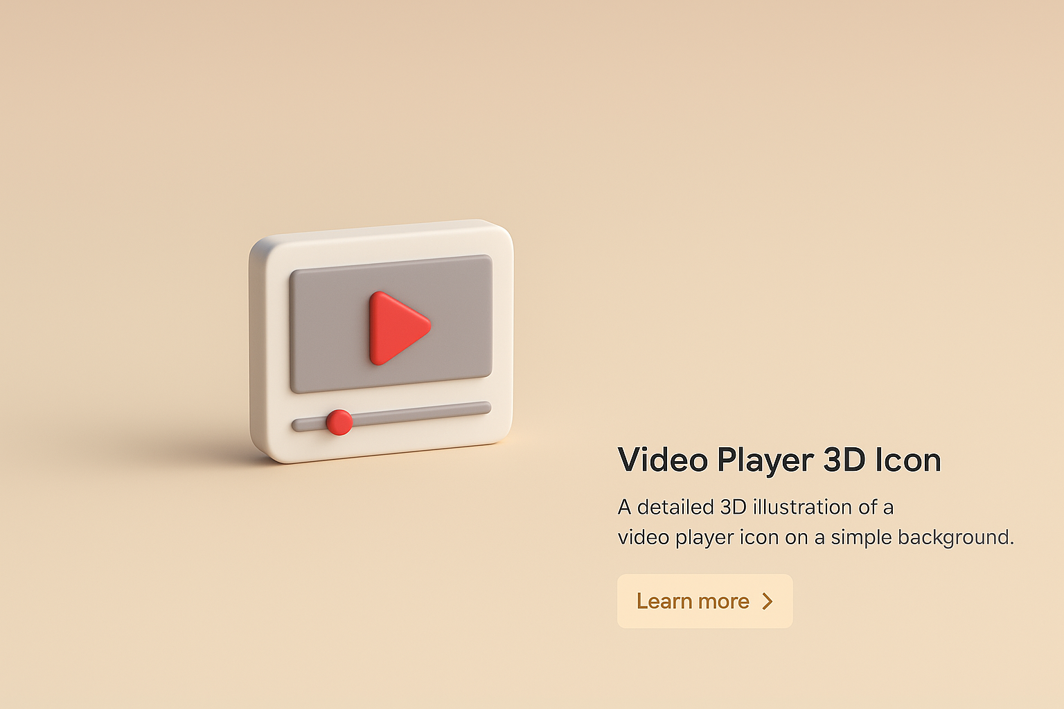 /Collection: /by davooda/Type: PNG/A realistic 3D illustration of a video player icon, featuring a play button and slider, set against a smooth gradient background. The design emphasizes simplicity and clarity.