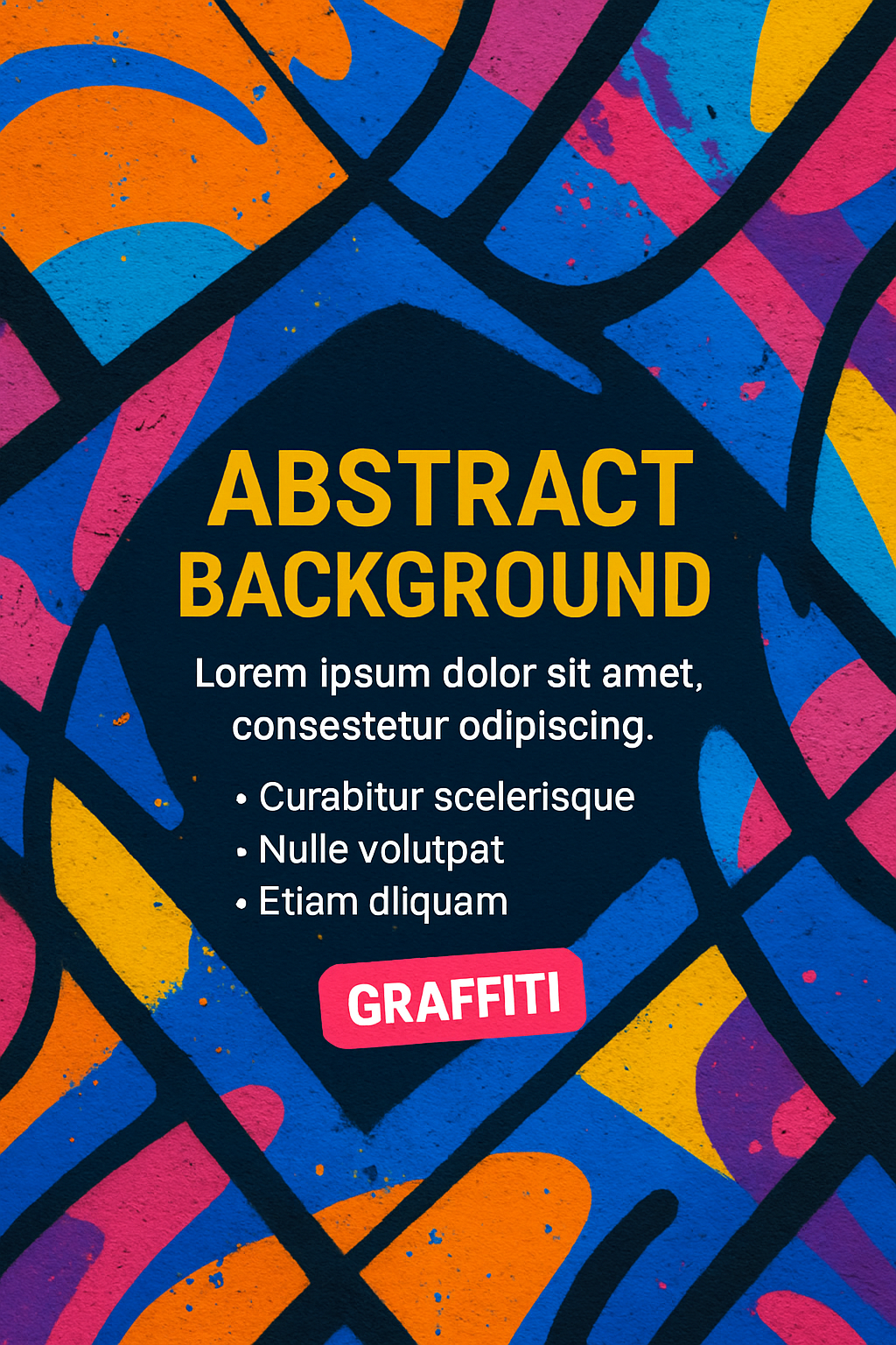 Vibrant abstract background featuring bold graffiti-style patterns, ideal for creative projects and marketing materials. The design uses bright colors and fluid shapes to create an engaging visual.