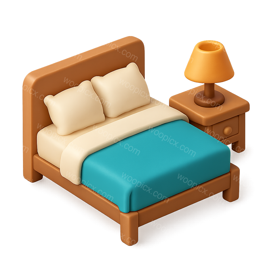 Stylish 3D Bedroom Icon with Bed and Lamp