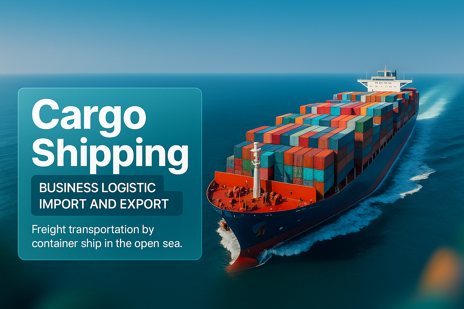 /Collection: /by davooda/Type: PNG/An aerial drone view of a large container ship laden with colorful cargo containers, navigating through the tranquil blue waters of the open sea, showcasing logistics and freight transportation.