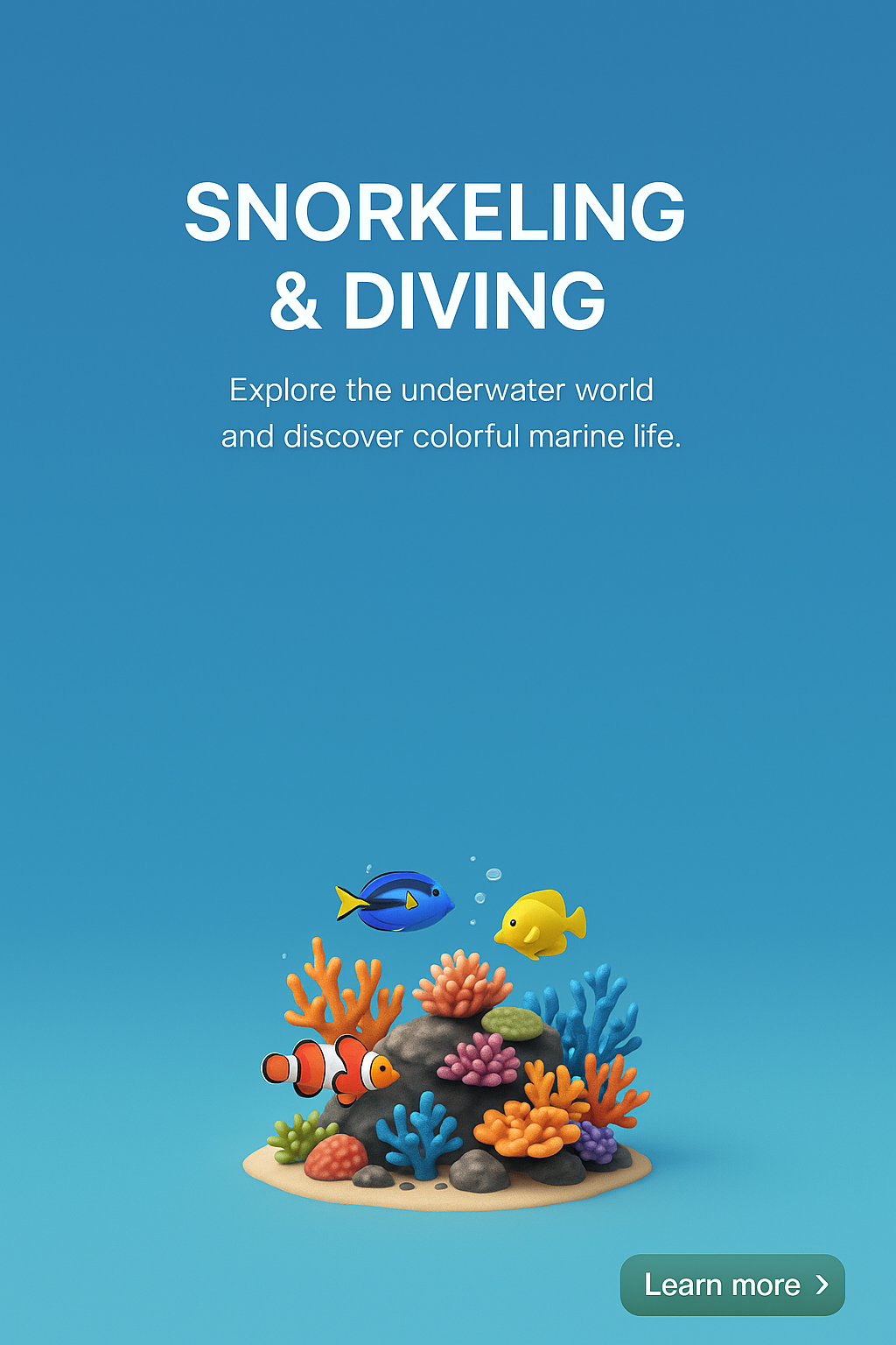 /Collection: /by davooda/Type: PNG/A vibrant underwater scene showcasing tropical fish and coral reefs, designed in a realistic 3D style. The layout includes a smooth gradient background and clear text elements.