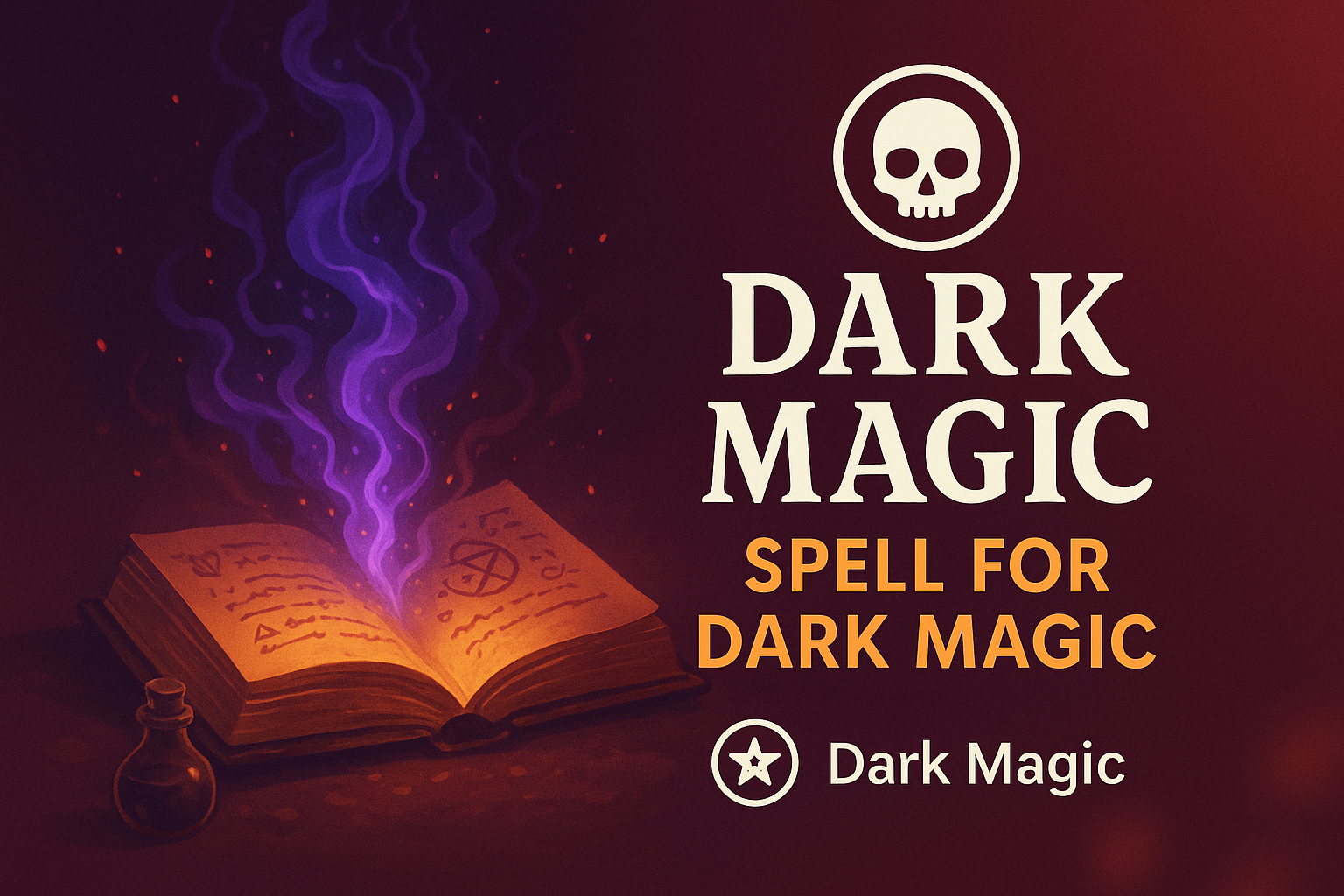 Illustrative graphic featuring an open book with mystical spell effects and dark magic themes. Ideal for fantasy content, gaming, or occult-themed projects.