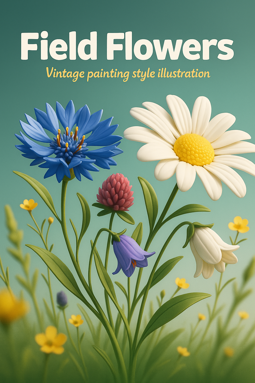 Vintage Style Field Flowers Illustration with Dynamic Colors