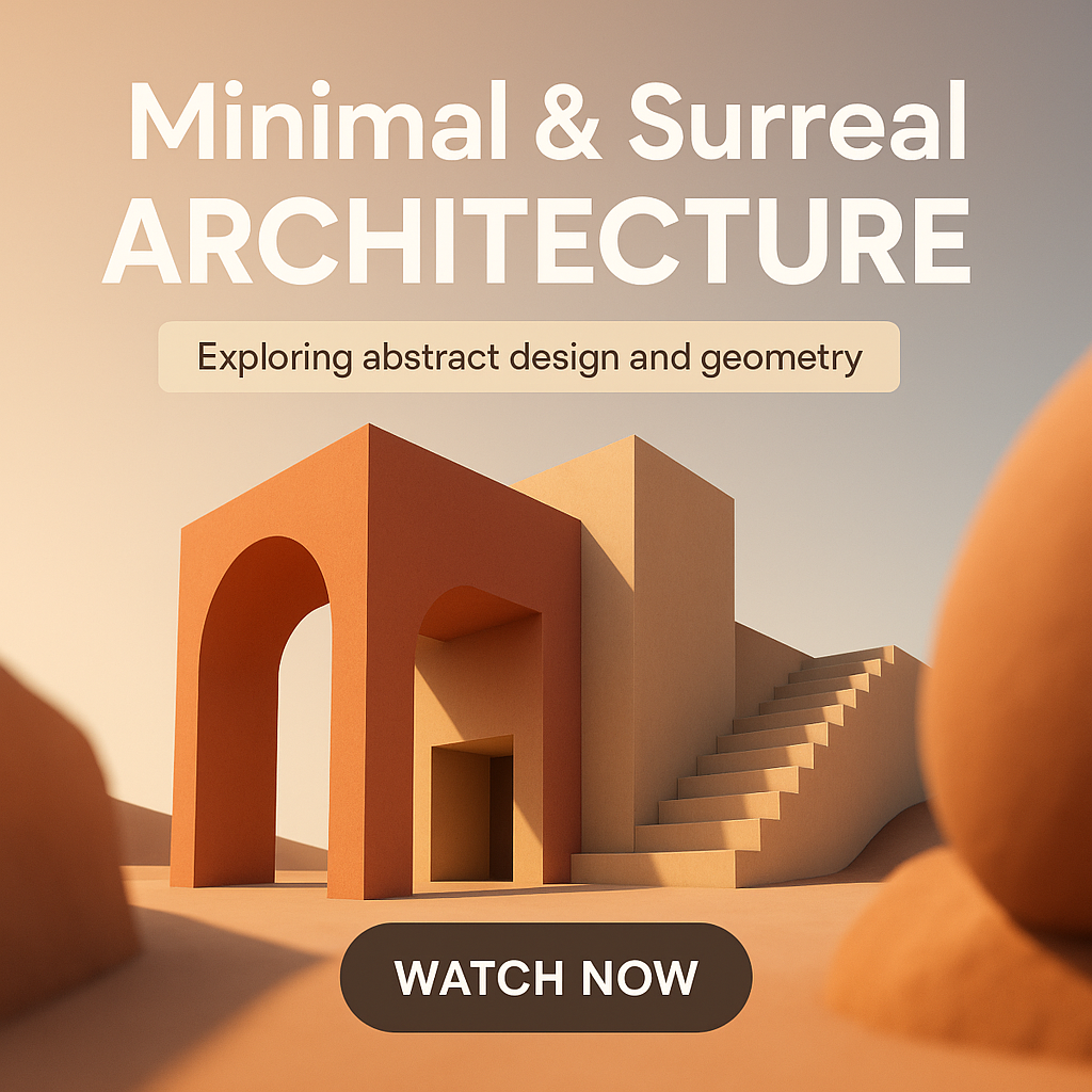 A visually striking graphic showcasing minimal and surreal architectural elements, ideal for promoting design concepts in a modern aesthetic.