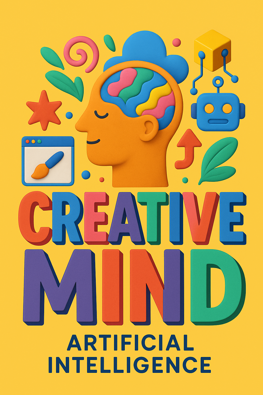 /Collection: /by davooda/Type: PNG/A colorful and playful graphic showcasing a human head with a brain made of vibrant elements, symbolizing creativity and artificial intelligence. Ideal for tech and creativity-related content.