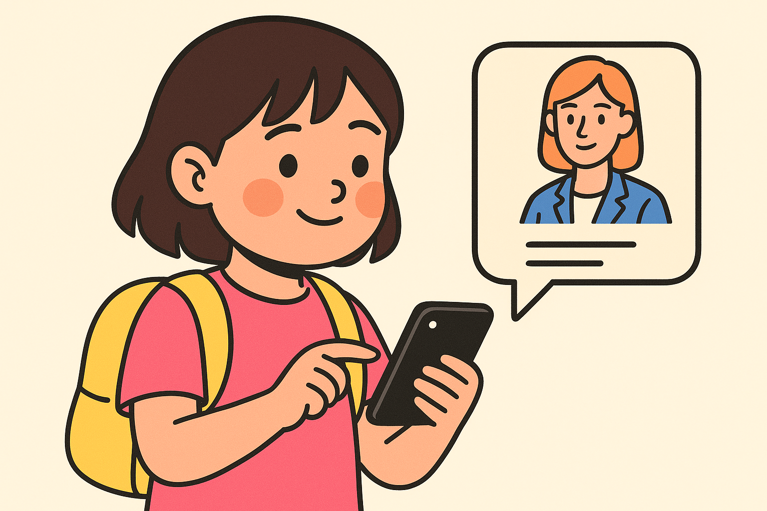 /Collection: /by davooda/Type: PNG/A colorful and engaging illustration depicting a young girl interacting with a smartphone, emphasizing digital communication. Ideal for educational content or digital literacy campaigns.