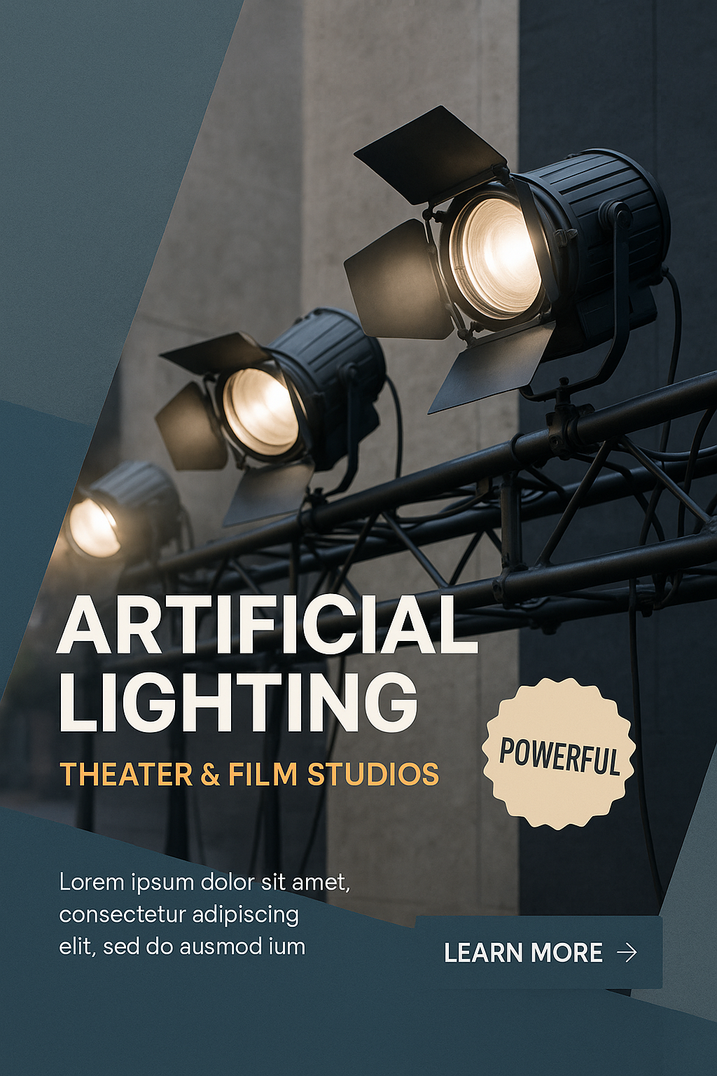 /Collection: /by davooda/Type: PNG/This image showcases a lighting ramp equipped with powerful spotlights, designed for theater and film studios. The balanced composition features geometric elements and clear text hierarchy.