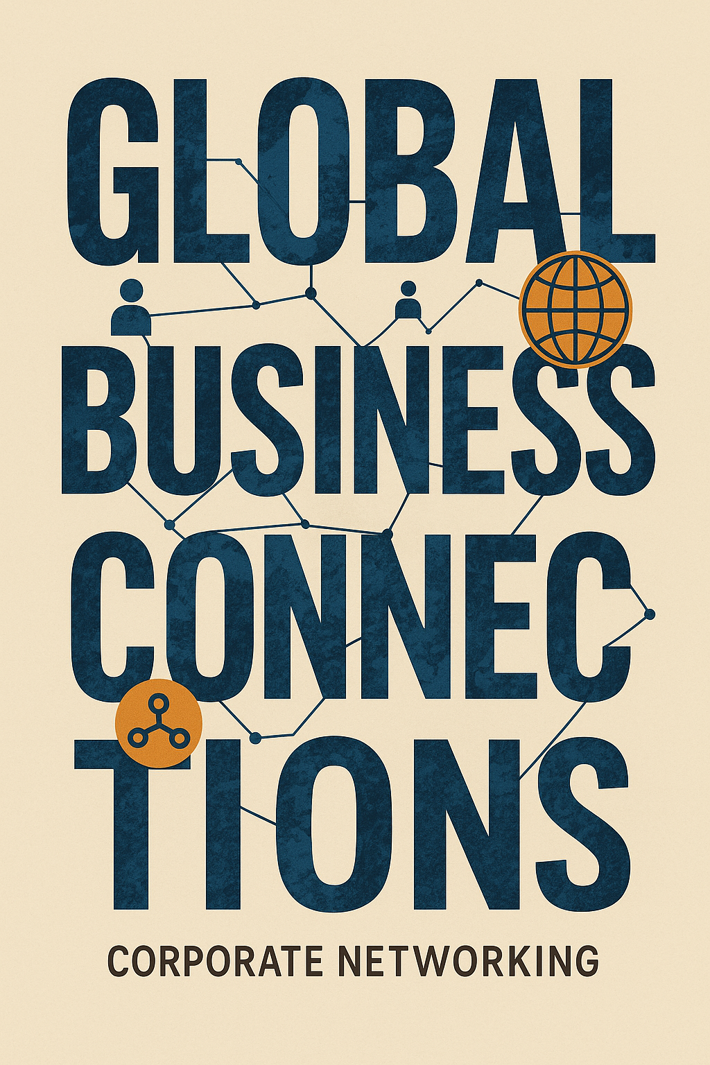 /Collection: /by davooda/Type: PNG/Modern graphic illustrating global business connections, featuring bold typography and networking icons, suitable for corporate presentations or marketing materials.