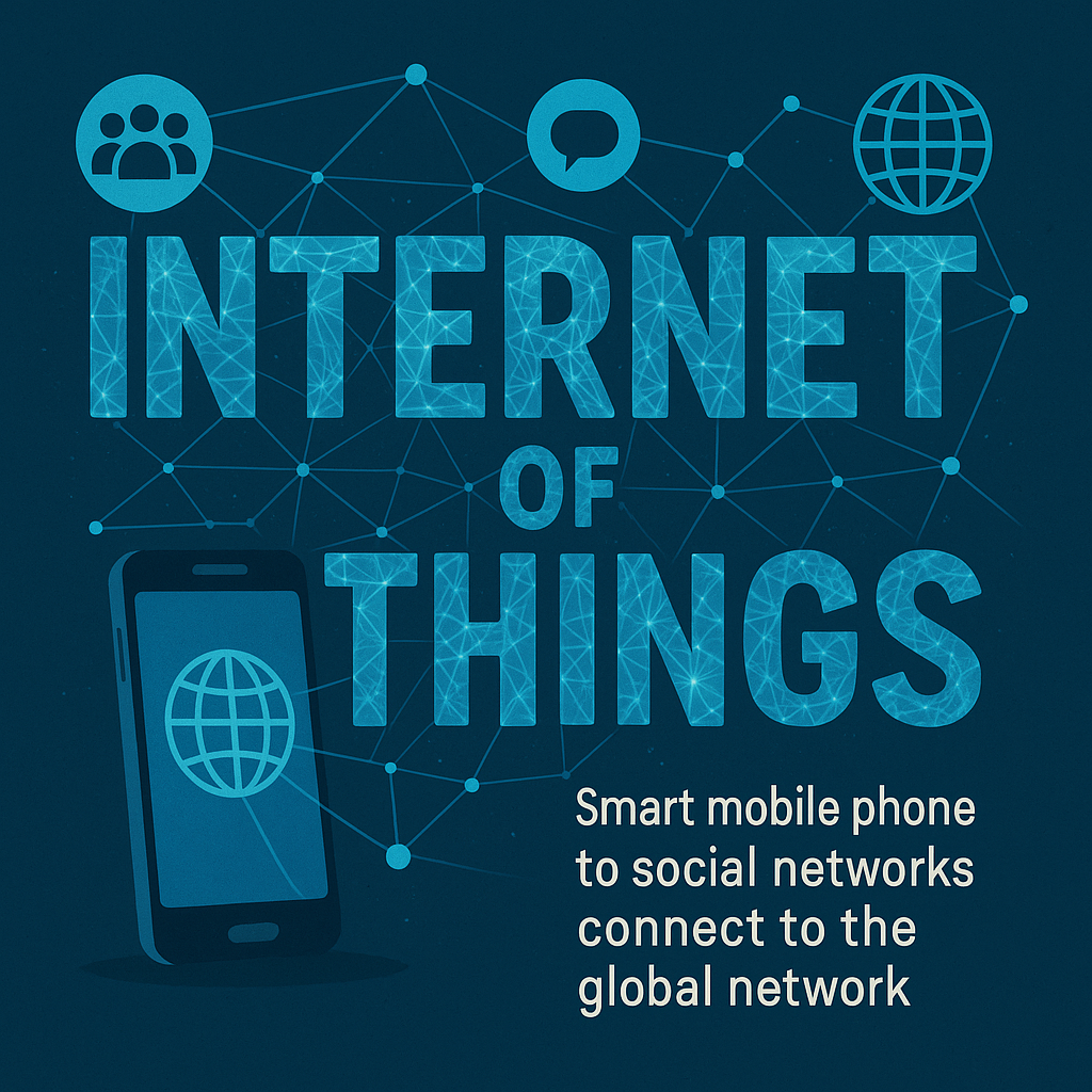 /Collection: /by davooda/Type: PNG/Informative graphic illustrating the concept of the Internet of Things featuring a smartphone and network elements, suitable for tech-related presentations or articles.