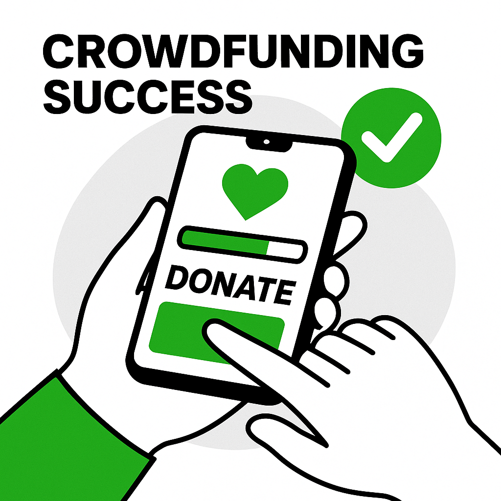 Illustrative Graphic of Crowdfunding Success with Donation Concept