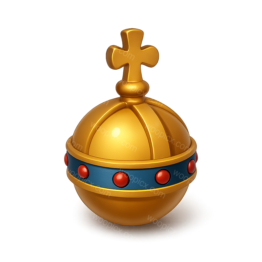 3D Golden Crown Icon with Cross and Colorful Details