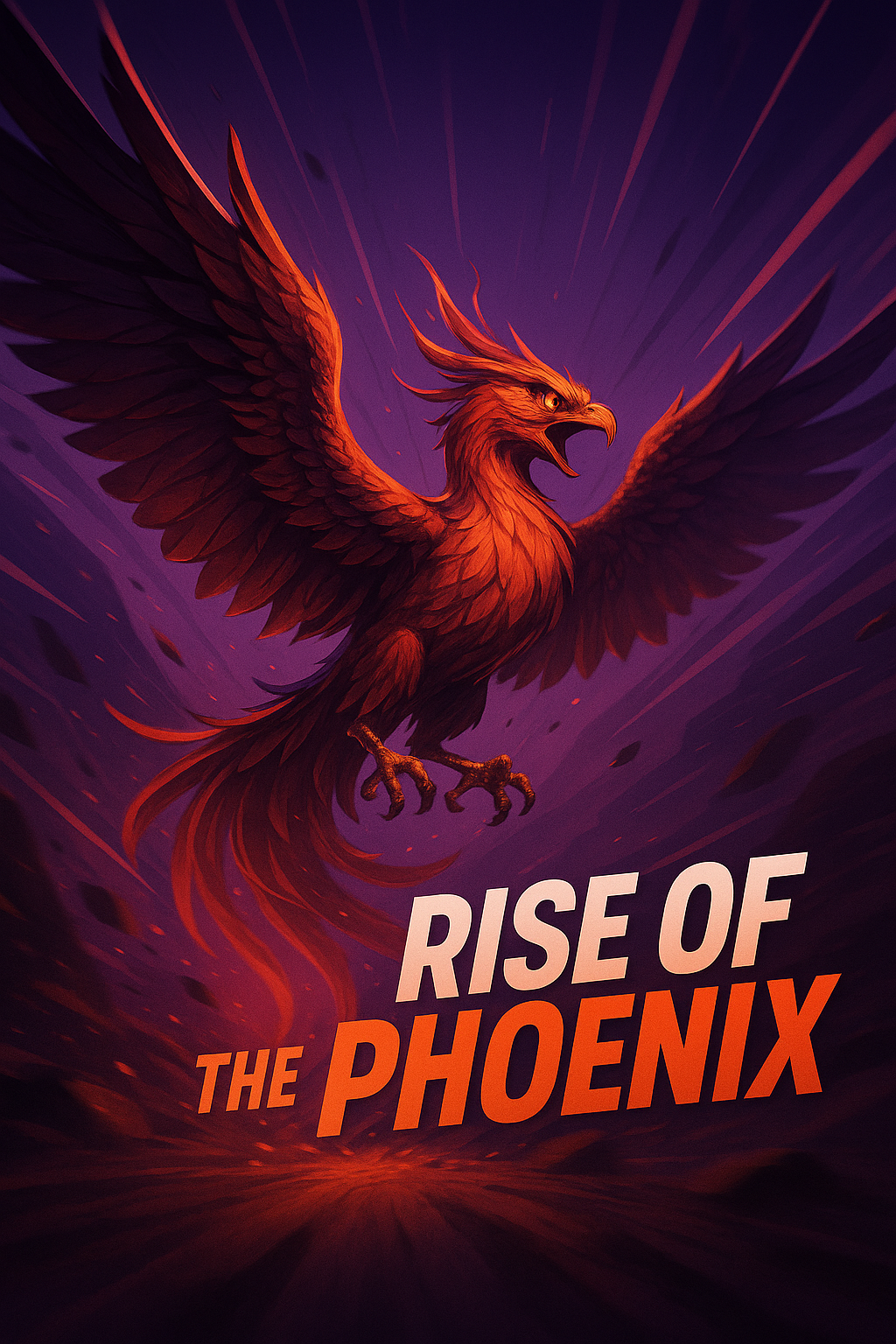 Dynamic Illustration of the Phoenix Rising with Bold Text