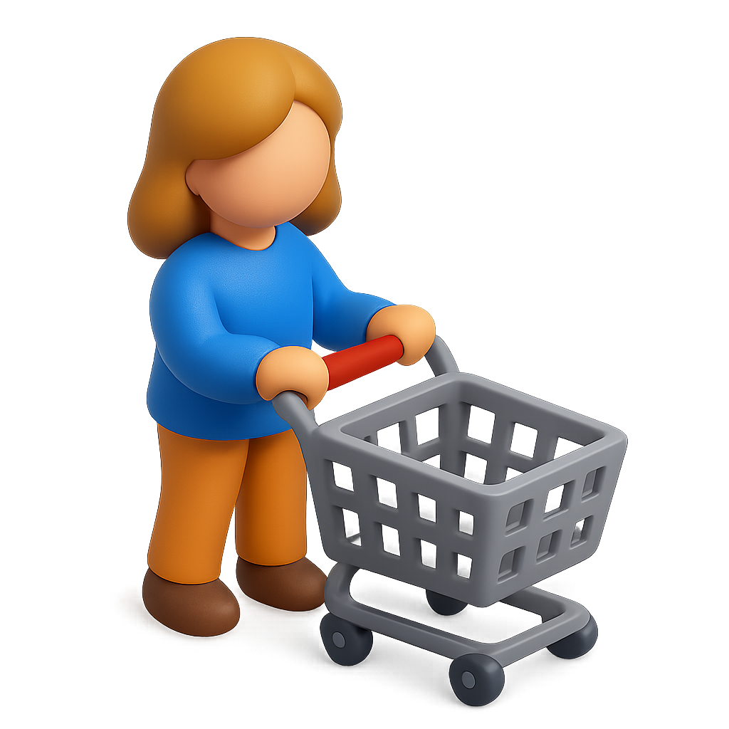 Stylized 3D Shopping Icon Featuring a Woman with a Cart