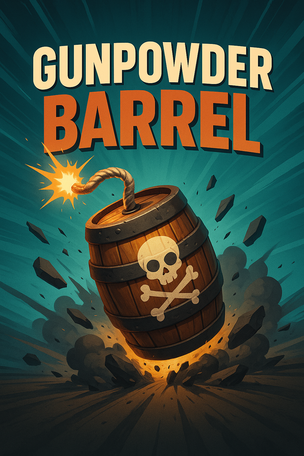 Dynamic Illustration of a Gunpowder Barrel with Explosive Elements