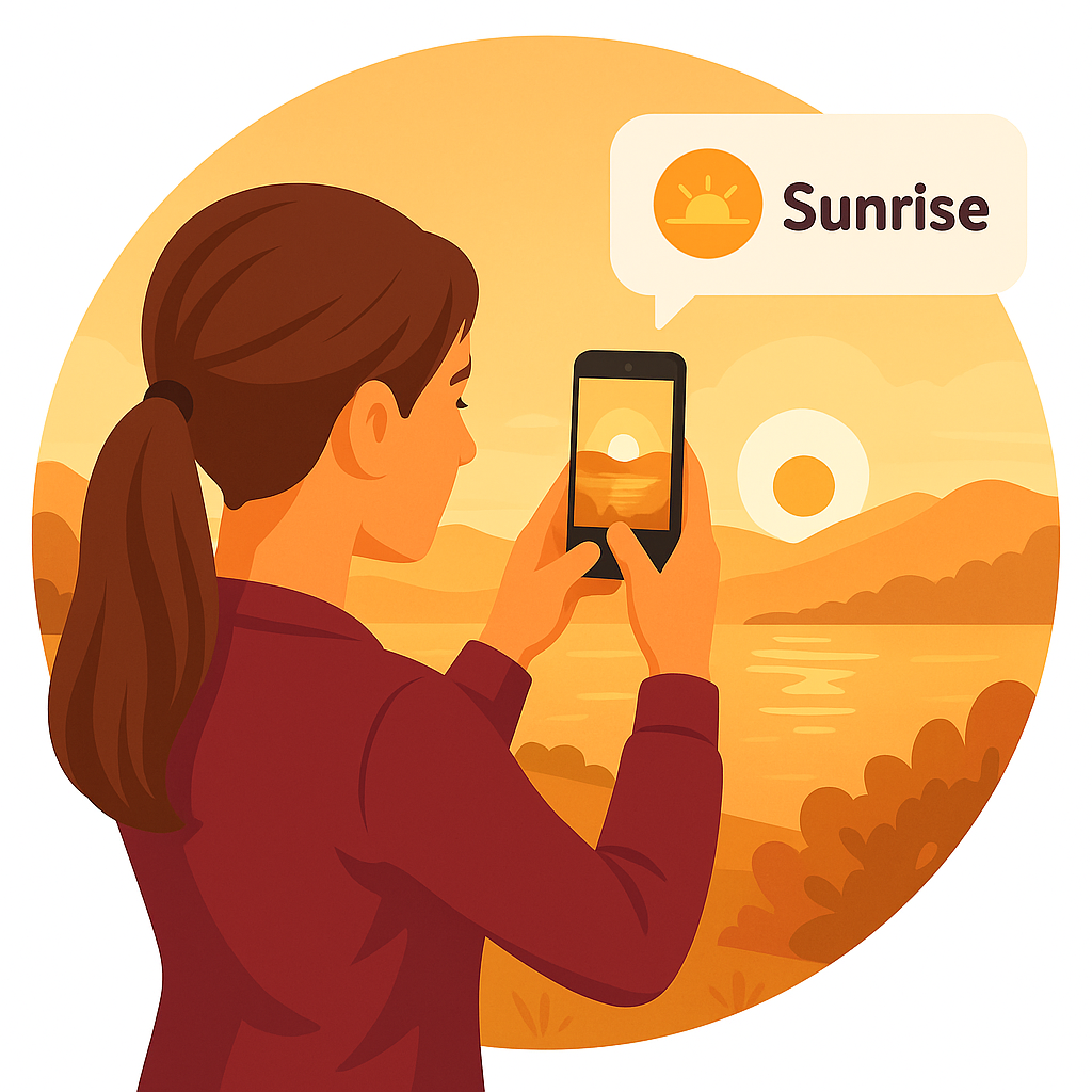 Illustration of a Woman Capturing a Sunrise on Her Phone