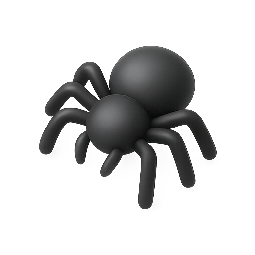 /Collection: /by davooda/Type: PNG/A minimalistic black spider graphic featuring smooth, rounded shapes and a clean design. Ideal for use in Halloween-themed projects, educational materials about arachnids, or as a playful design element in digital media.