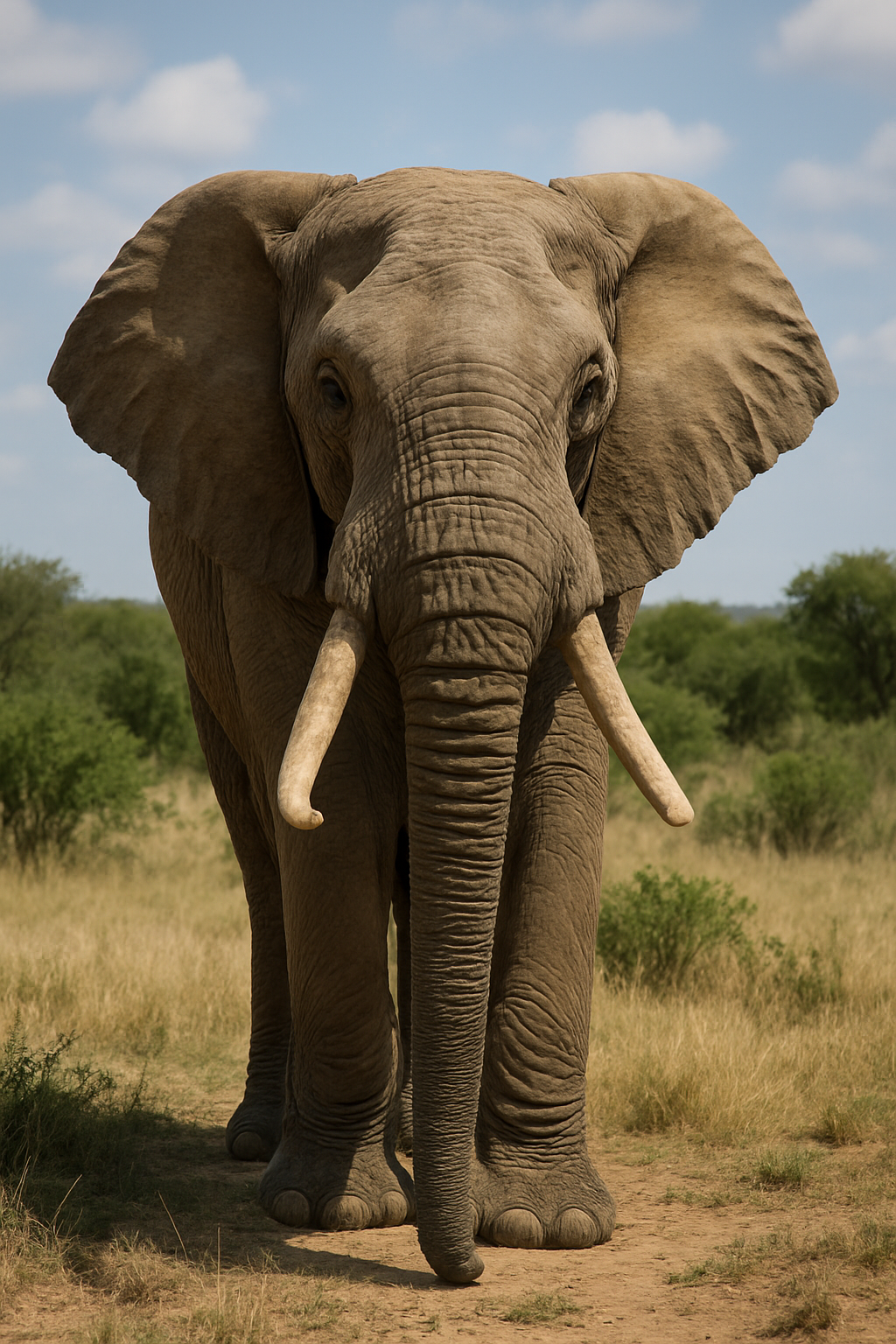 Majestic African Elephant Walking in Savanna Landscape