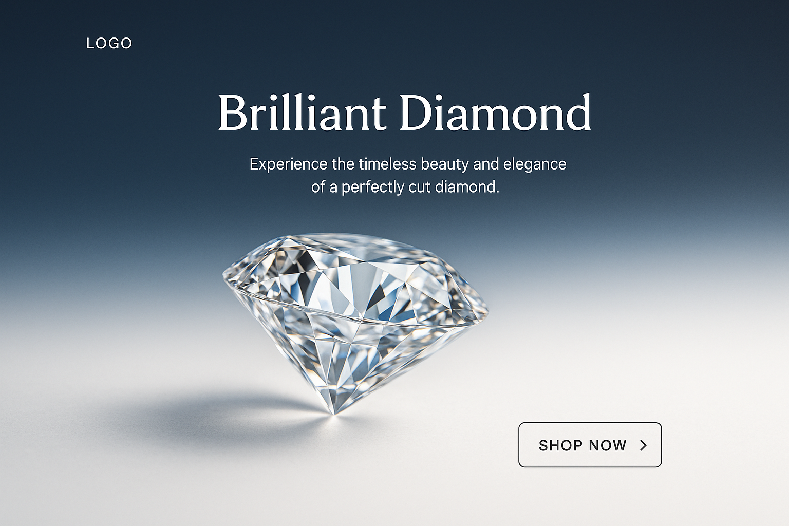 A visually appealing web design showcasing a brilliant diamond. The layout features a gradient background, elegant typography, and a clear call-to-action button.