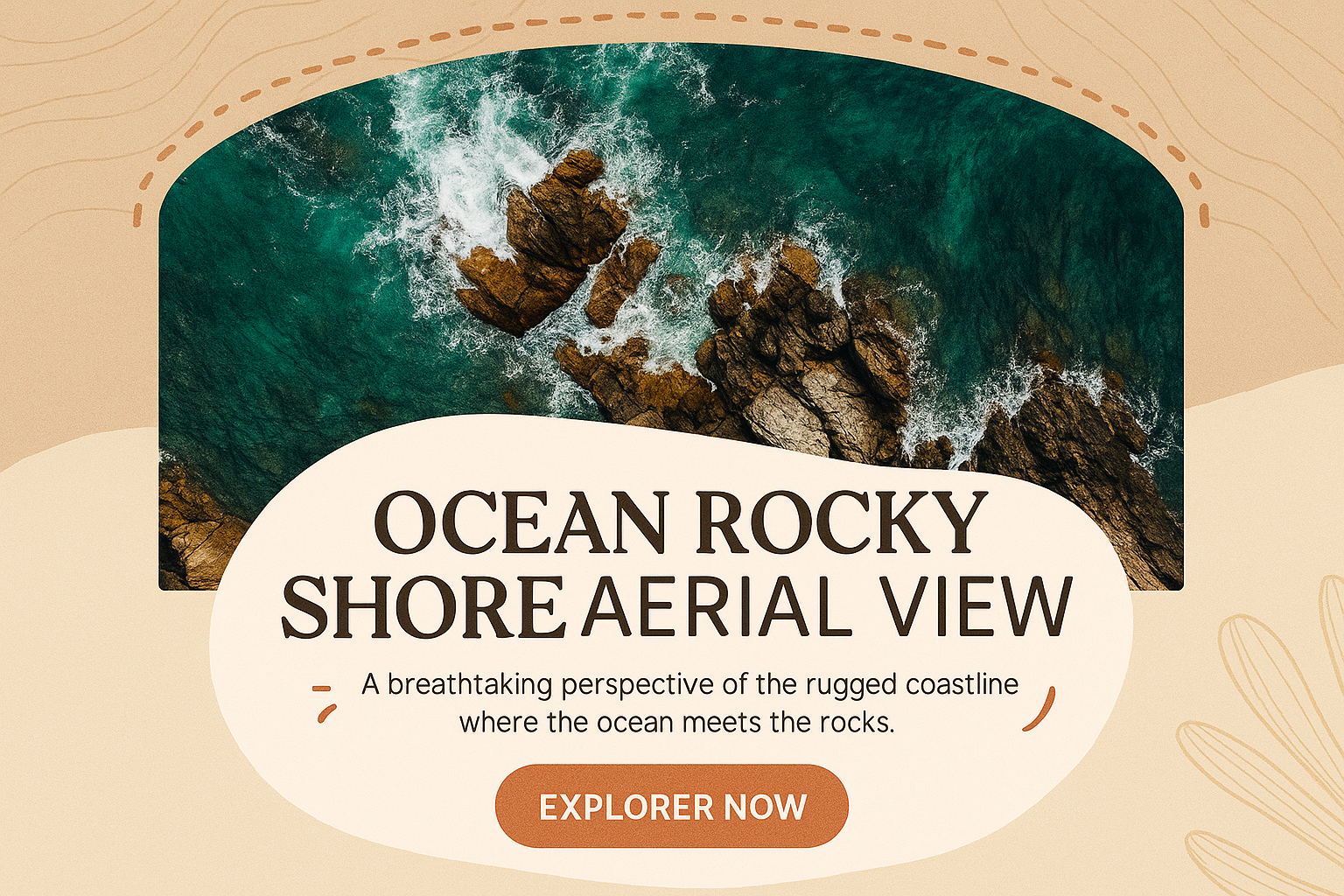 Aerial View of Rocky Ocean Shoreline with Text Overlay