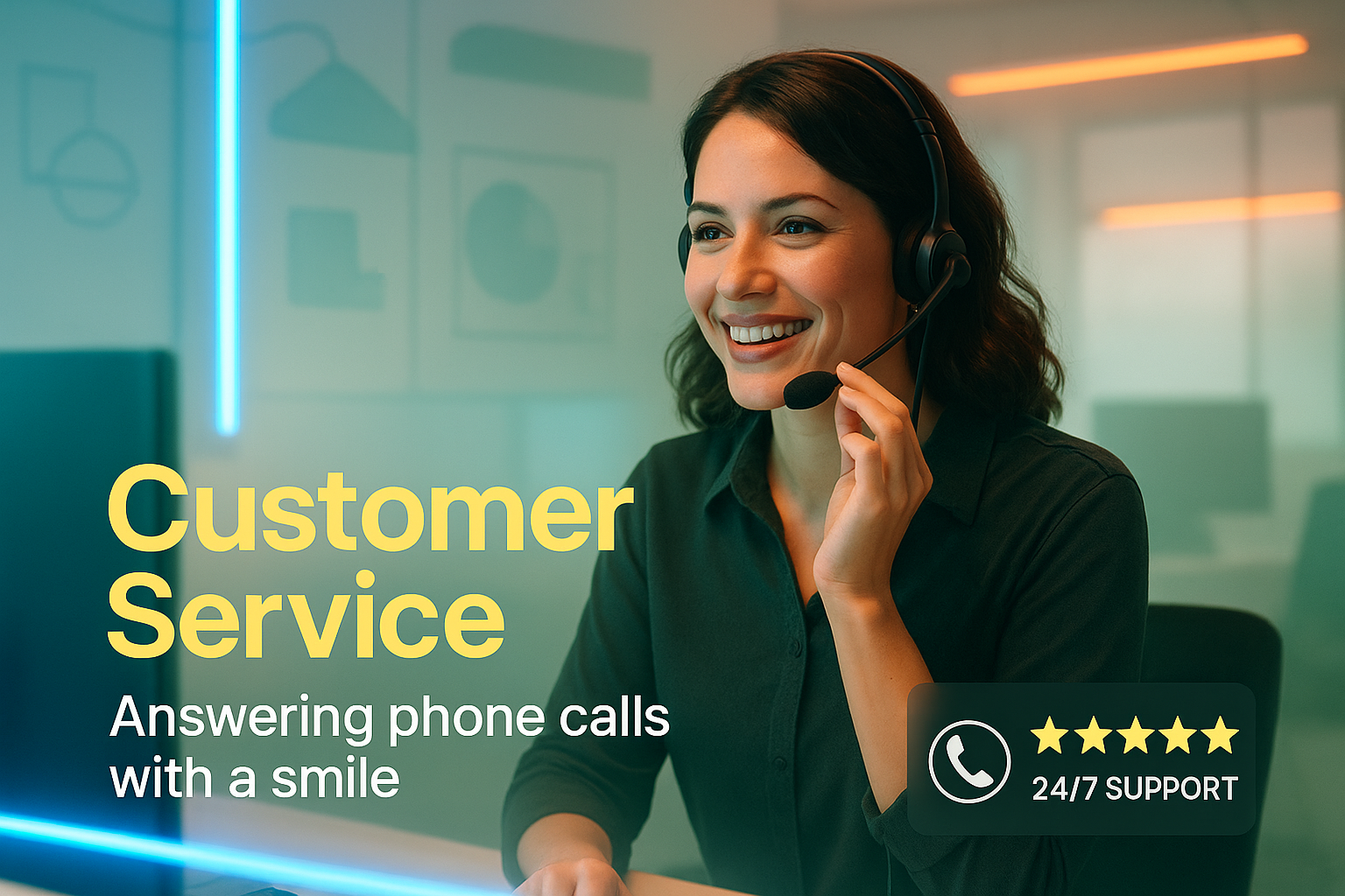 Professional Customer Service Support Graphic Featuring Smiling Agent
