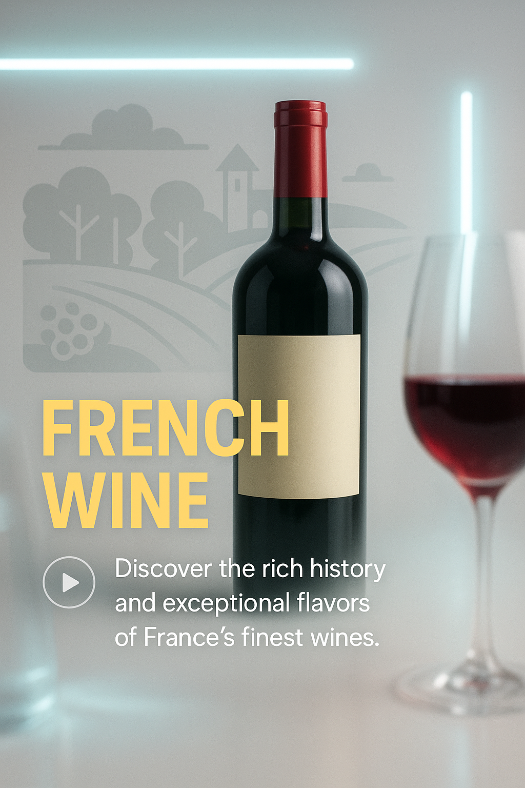 Elegant French Wine Promotional Graphic with Bottle and Glass