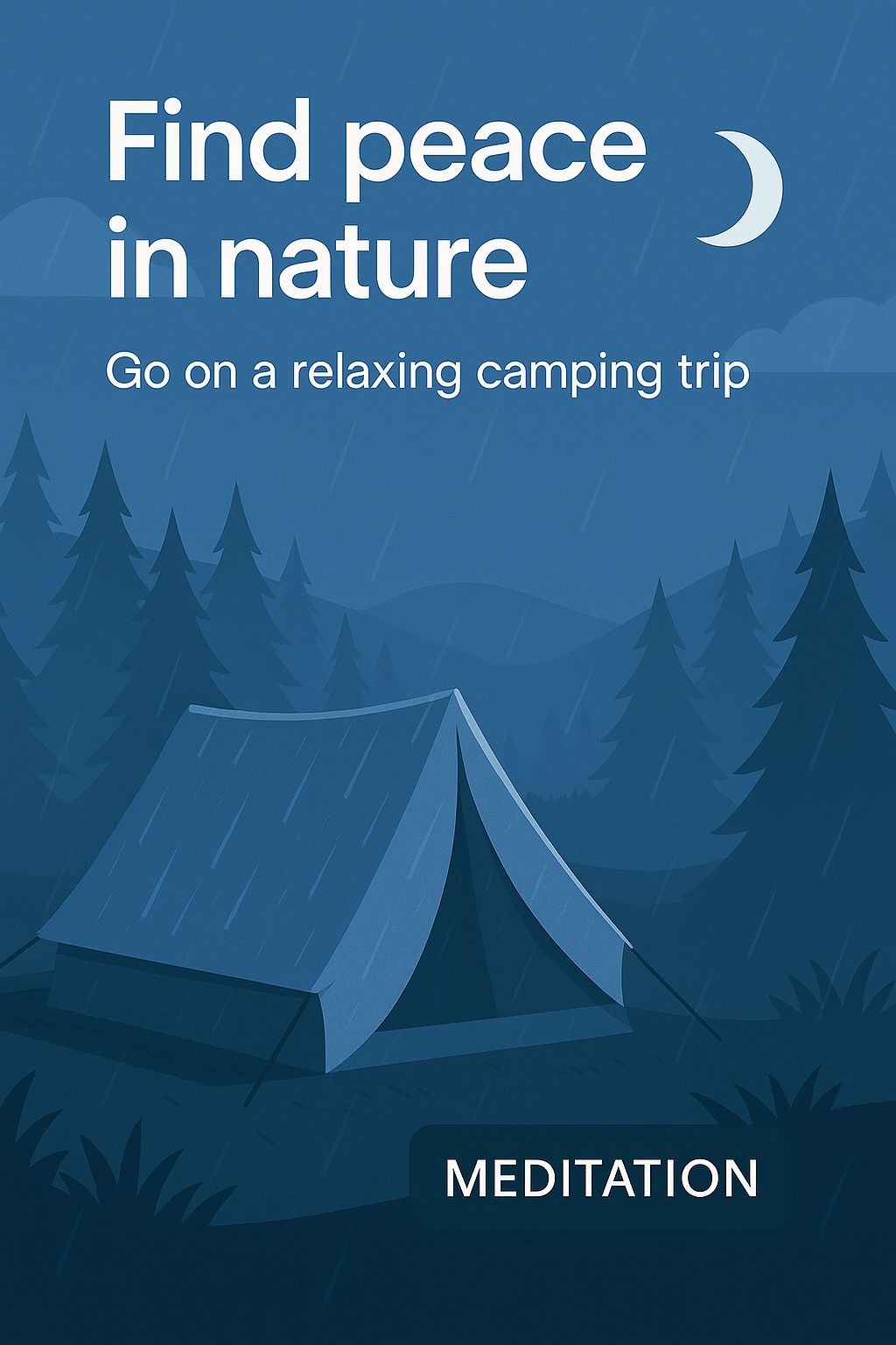 A calming graphic illustrating a tent in a tranquil forest setting, emphasizing relaxation and meditation in nature, suitable for wellness promotions.