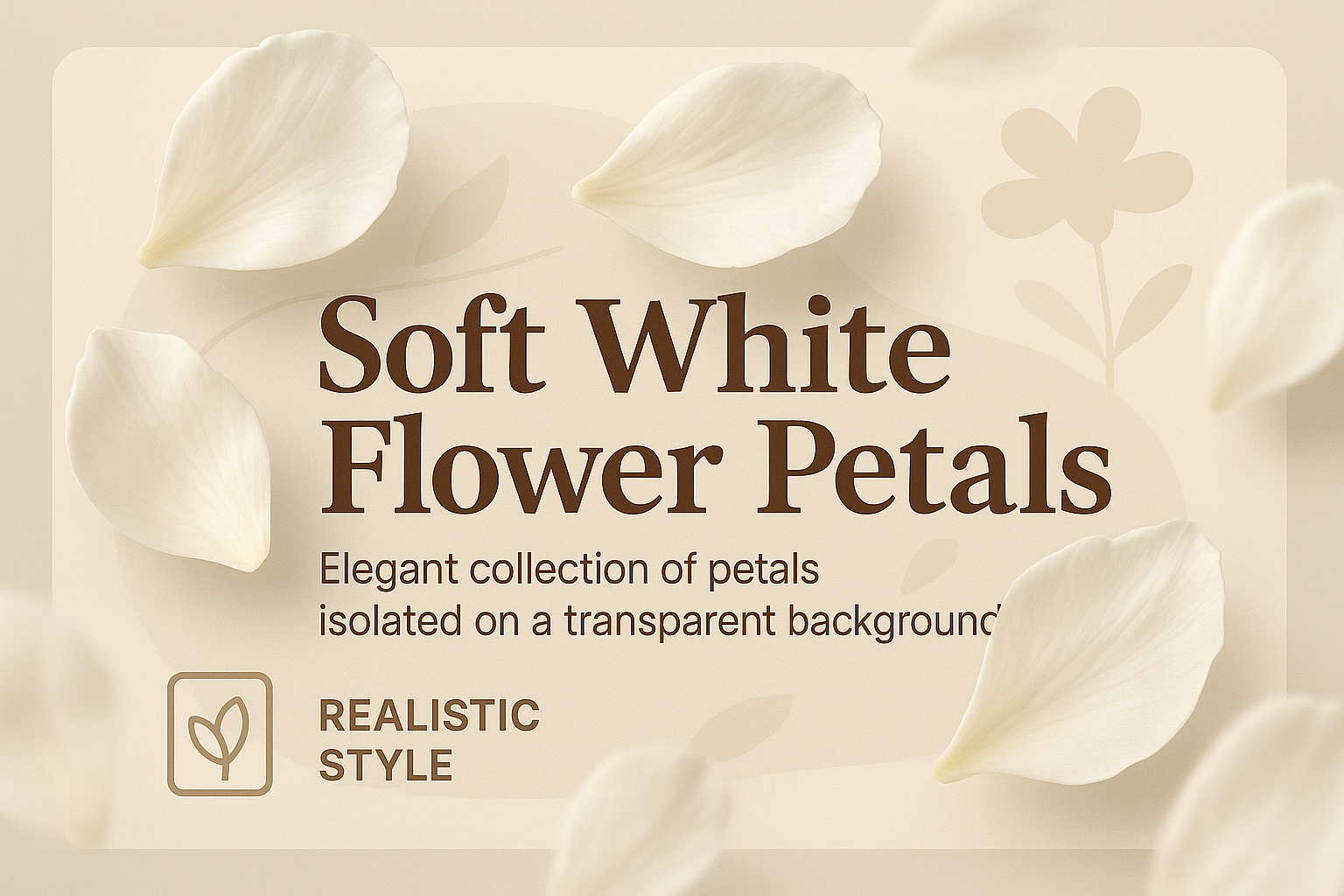 /Collection: /by davooda/Type: PNG/A visually appealing graphic featuring a collection of soft white flower petals isolated on a neutral background, ideal for floral design projects and branding.