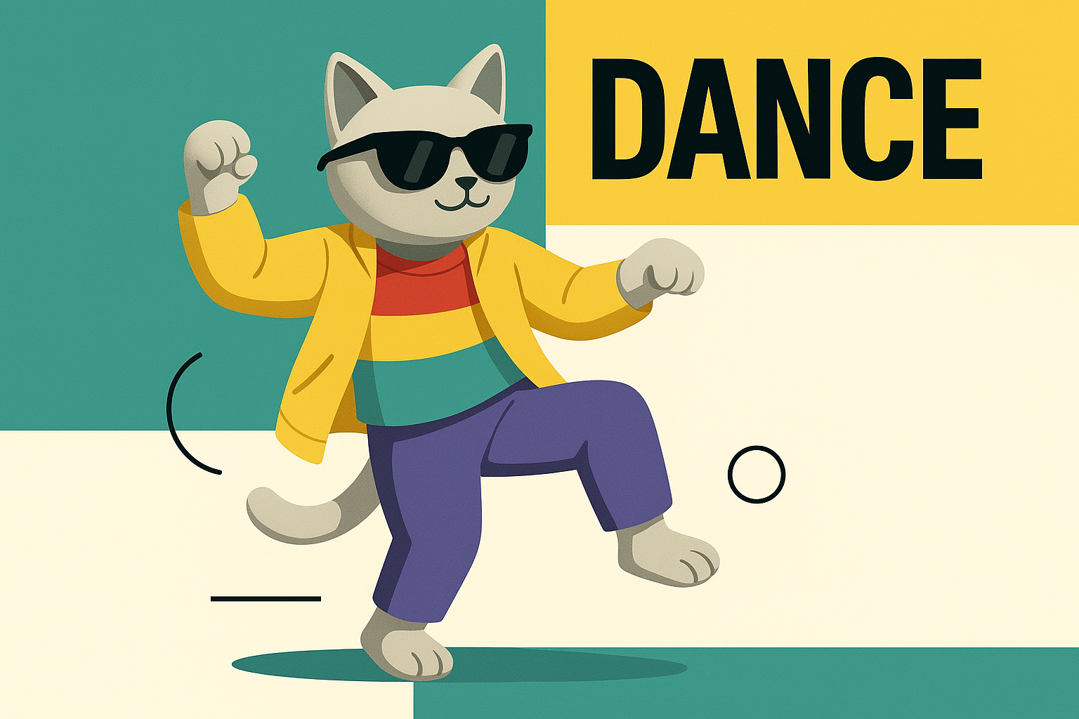 Playful Dancing Cat Illustration with Vibrant Colors