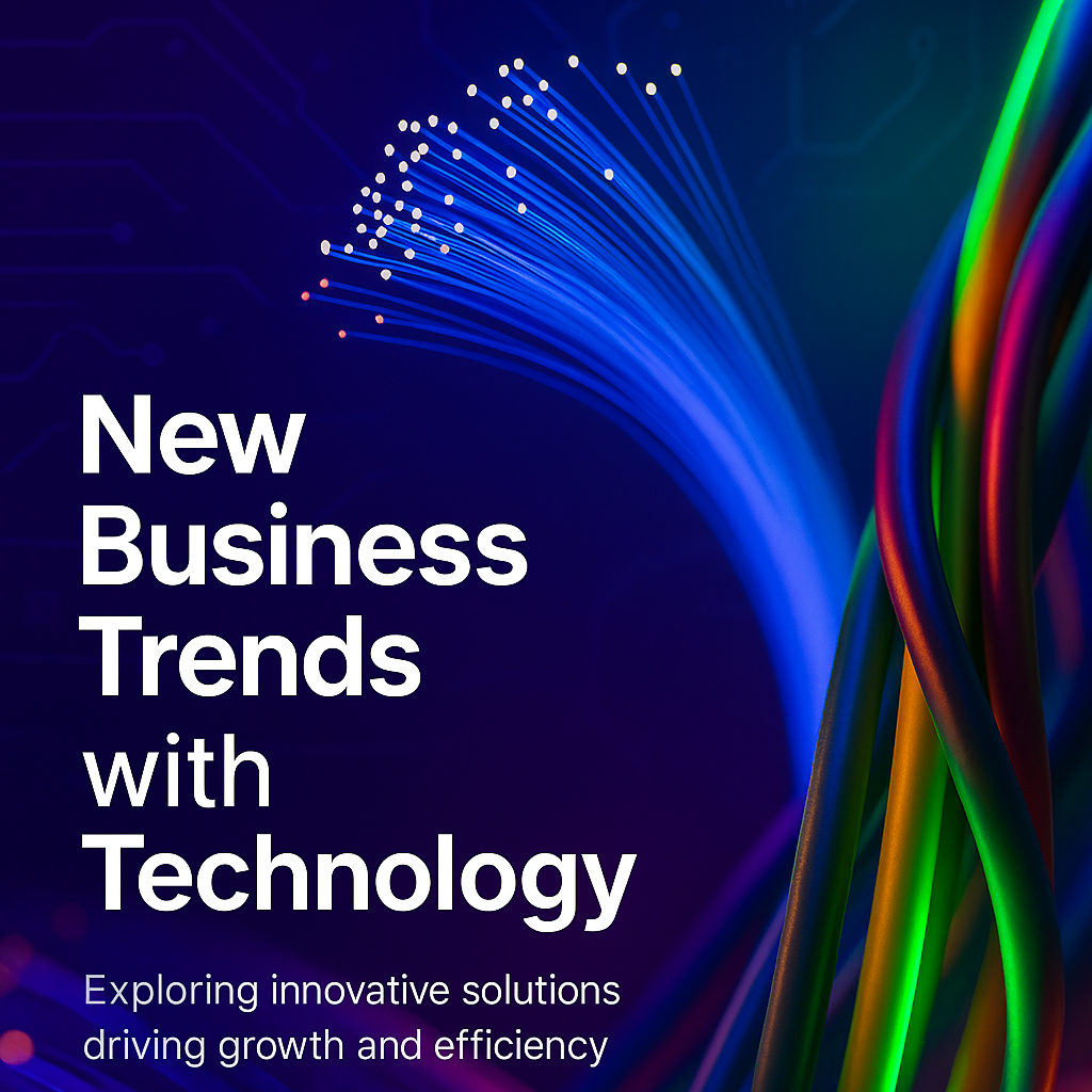 /Collection: /by davooda/Type: PNG/Vibrant digital graphic showcasing business trends in technology with colorful fiber optics and a modern design, ideal for corporate presentations or tech discussions.