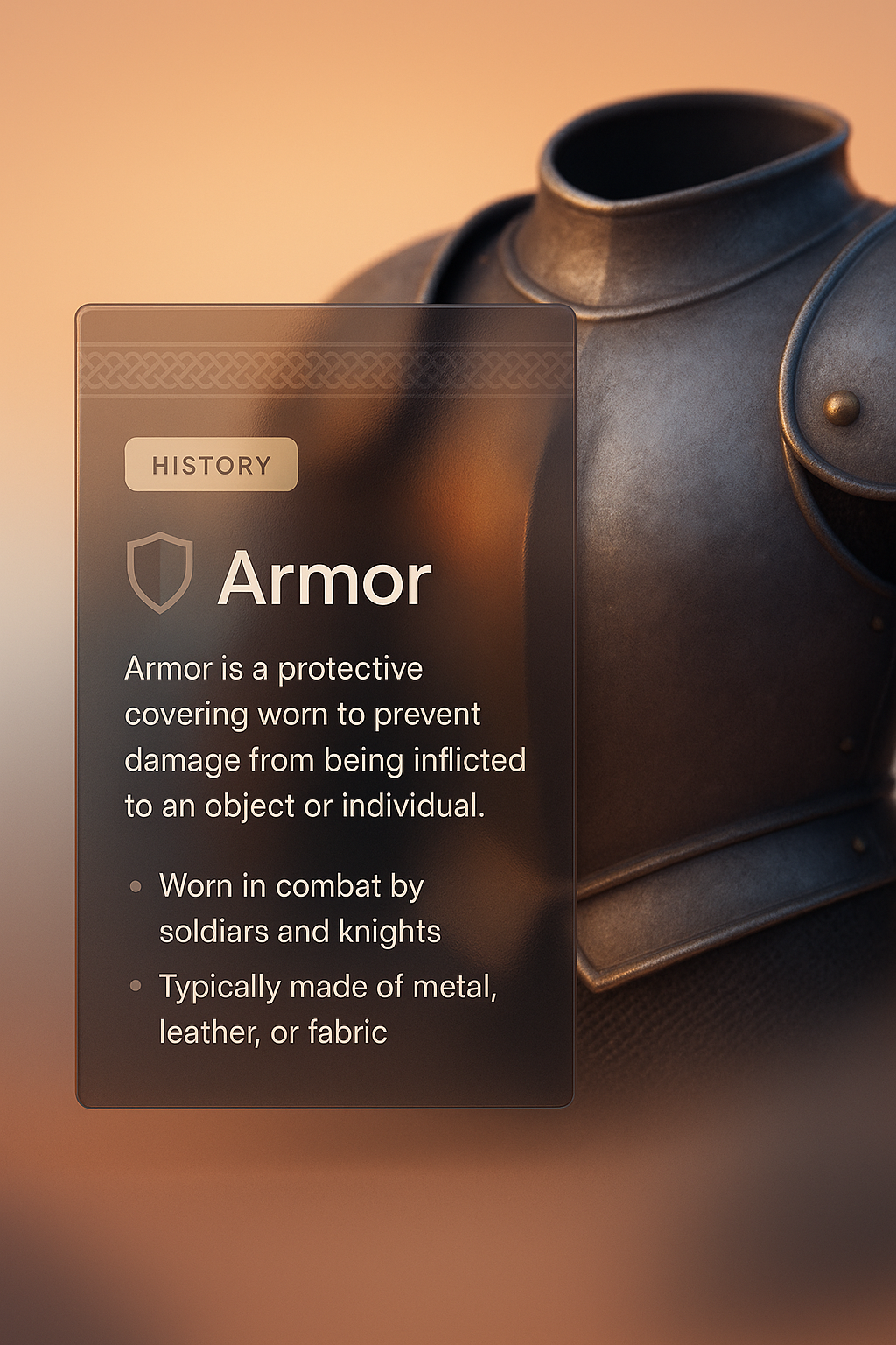 /Collection: /by davooda/Type: PNG/A visually striking 3D representation of armor, featuring a transparent text block that seamlessly integrates with the image. The design emphasizes clarity and depth.