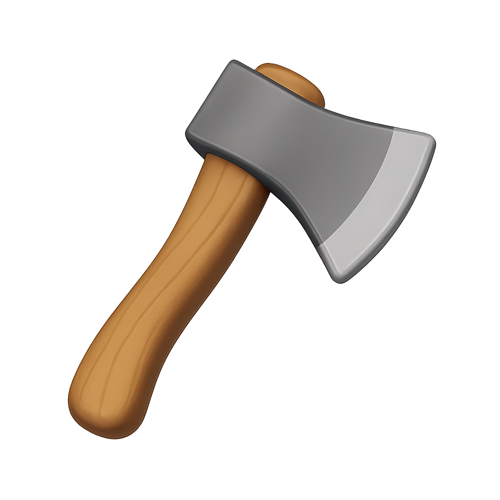 A visually appealing 3D icon of an axe, showcasing a polished metal blade and a wooden handle. The icon is designed in an isometric view with a transparent background.