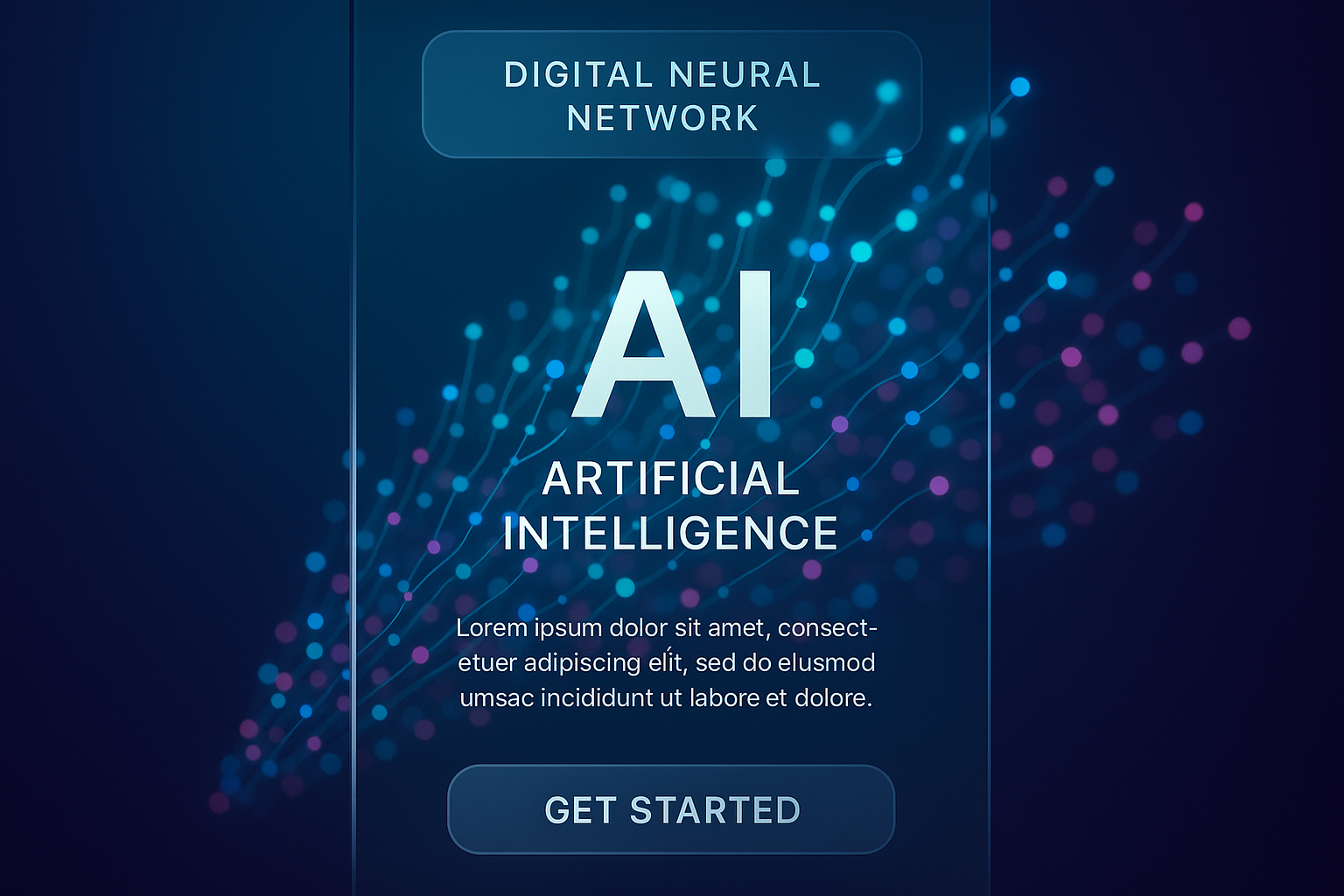 Digital Neural Network Themed Graphic for AI and Deep Learning