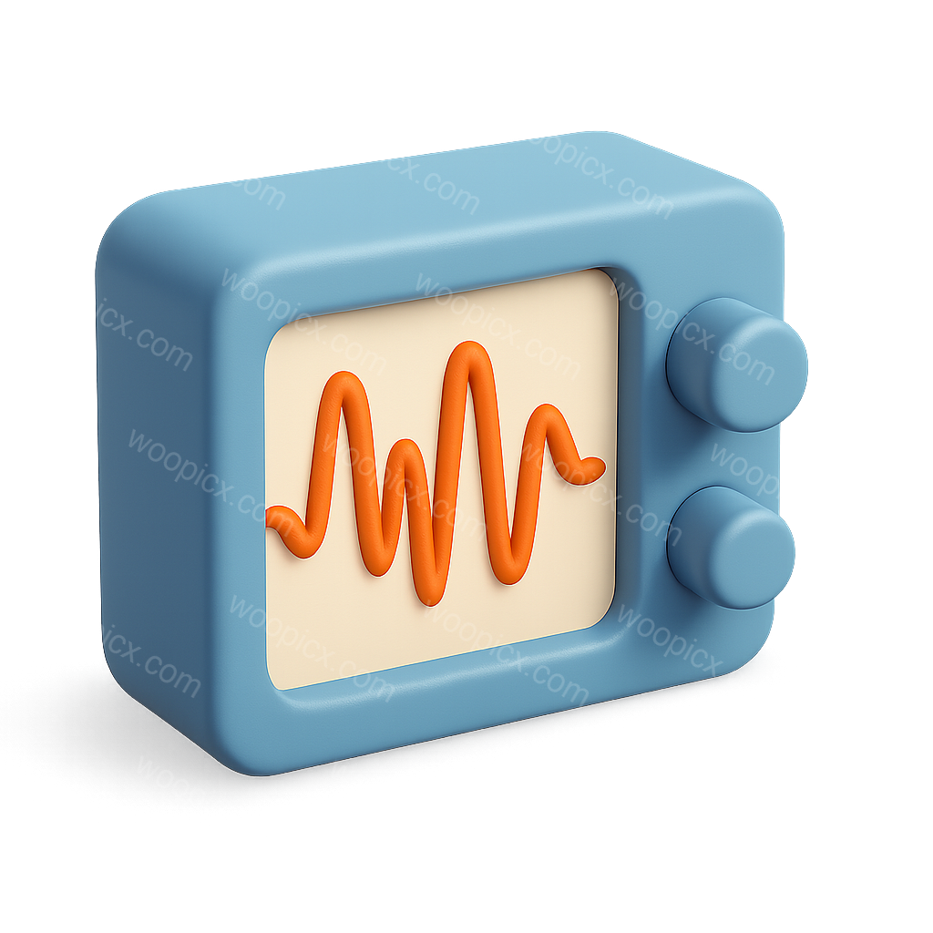 /Premium/Collection: /by davooda/Type: PNG/This image features a 3D icon designed to represent high-frequency concepts. The icon has a blue body with a central orange wave pattern, viewed from a three-quarter isometric perspective, enhancing its volumetric appearance.