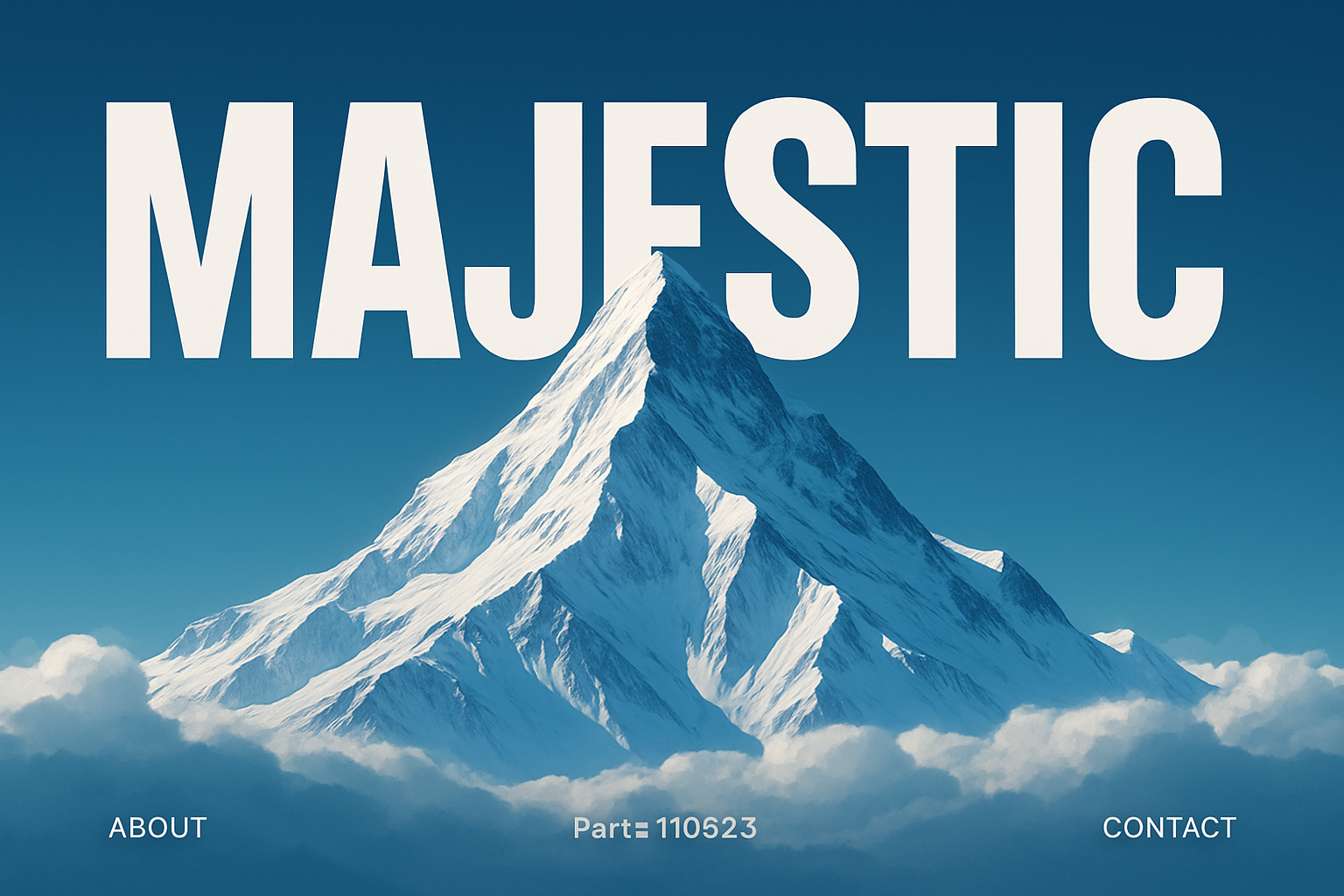 A breathtaking digital illustration of a majestic snowy mountain peak rising above clouds, set against a vibrant blue sky. The composition is modern and minimalistic, featuring bold typography.