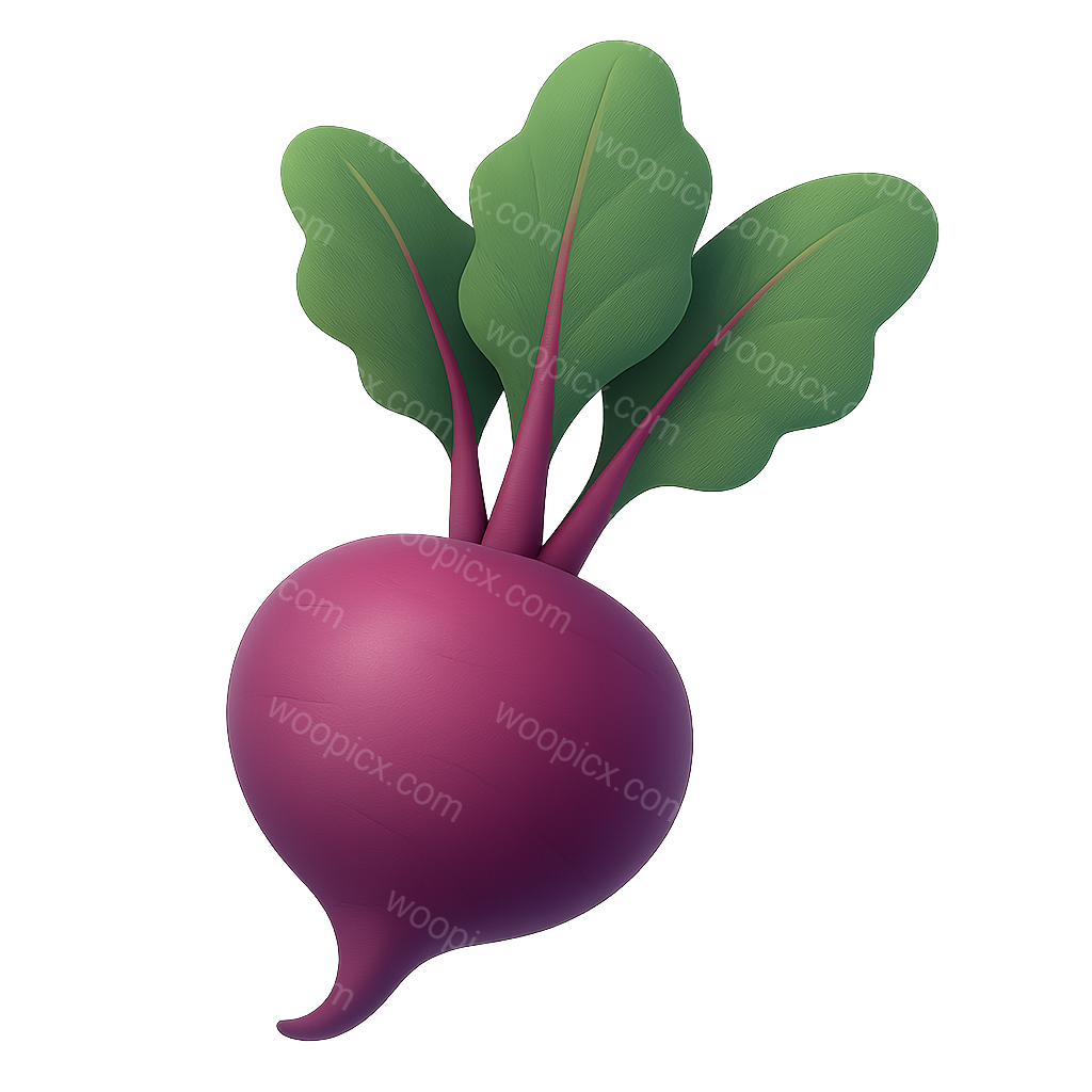 /Premium/Collection: /by davooda/Type: PNG/A vibrant 3D icon of a beet with green leaves, presented in a three-quarter isometric view. The design features a smooth and glossy texture against a soft gradient background.