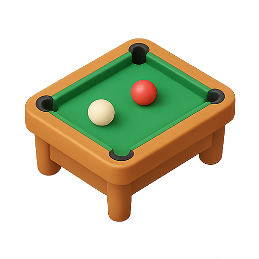 A cute 3D rendered image of a miniature pool table featuring a green felt surface and two balls, ideal for playful designs and children's products.