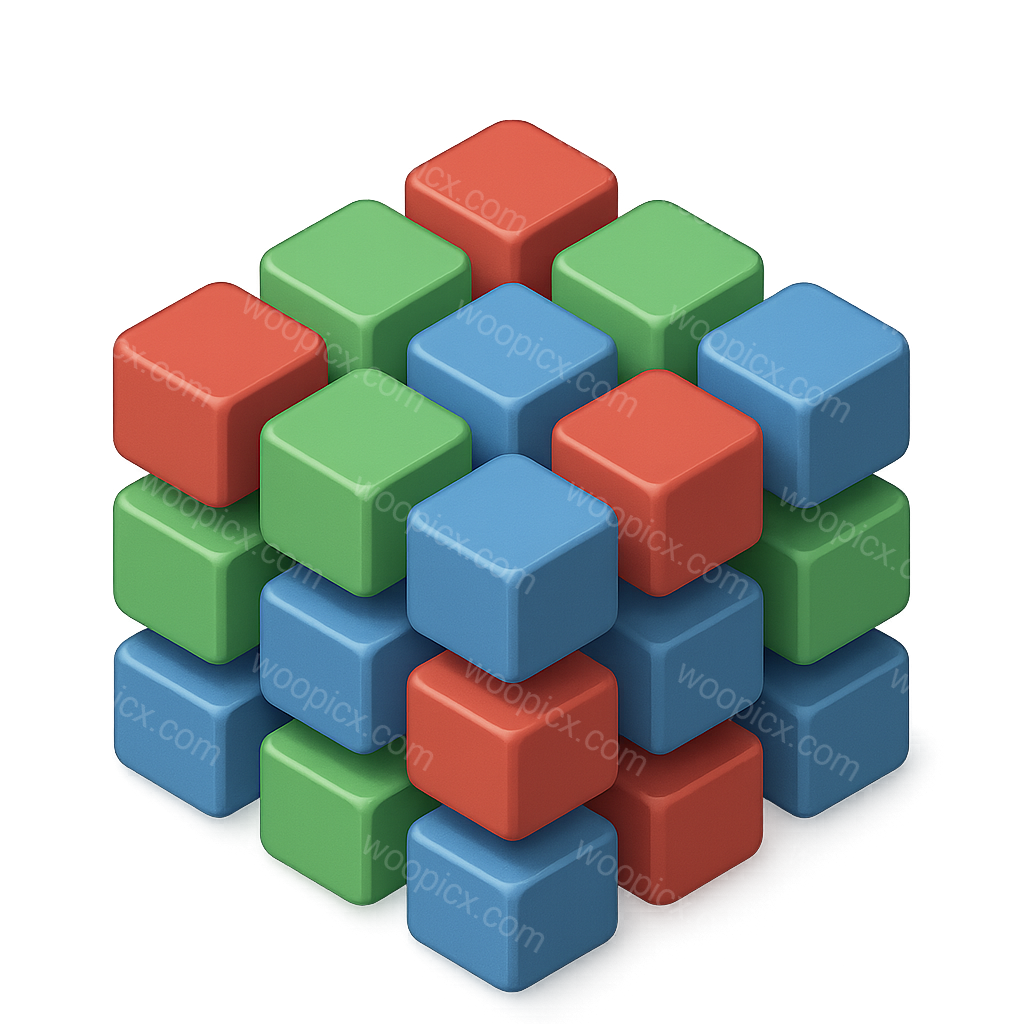 /Premium/Collection: /by davooda/Type: PNG/A vibrant 3D representation of a MicroLED pixel array, featuring a mix of red, green, and blue cubes arranged in a volumetric style, set against a dark background.