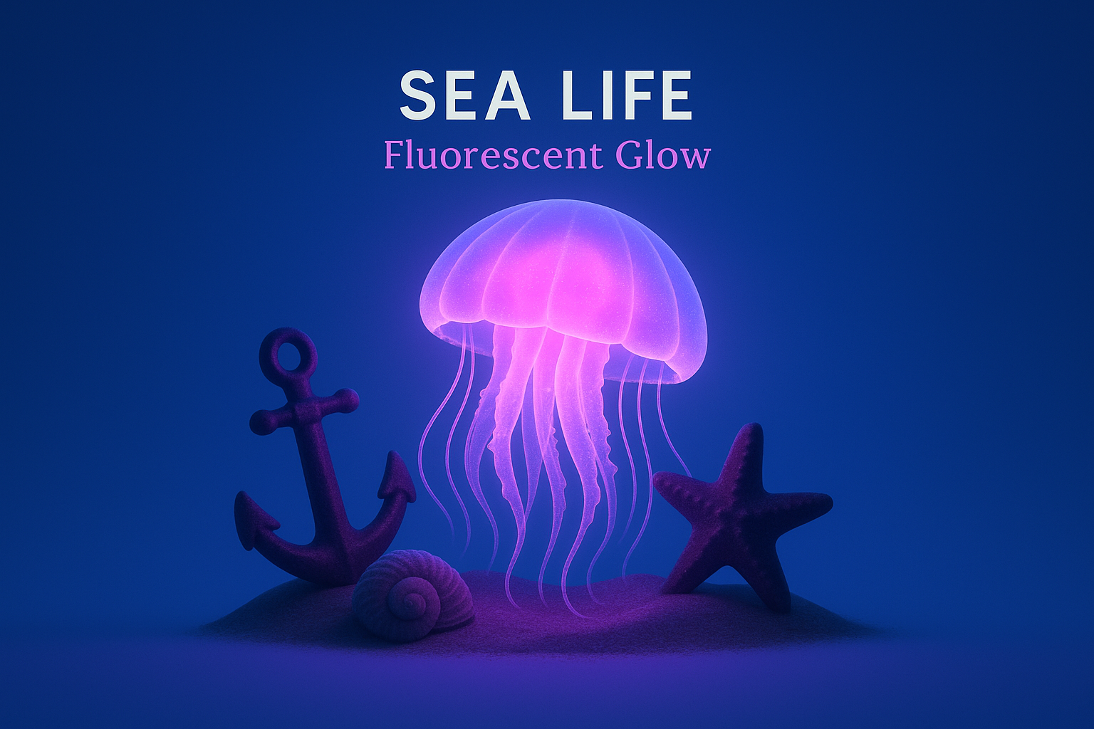 Illuminated Neon Ocean Scene with Jellyfish and Shells