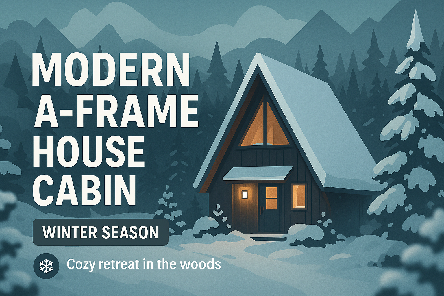 Cozy A-Frame Cabin Illustration in Winter Landscape