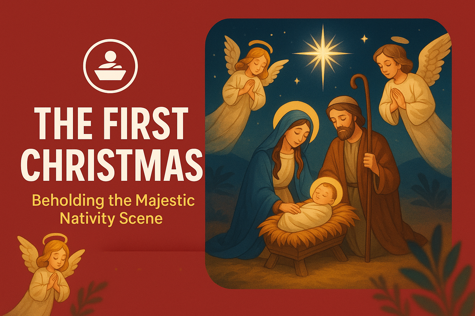 /Collection: /by davooda/Type: PNG/A warm and inviting illustration depicting the nativity scene with Mary, Joseph, and baby Jesus, surrounded by angels. Ideal for holiday promotions and church events.