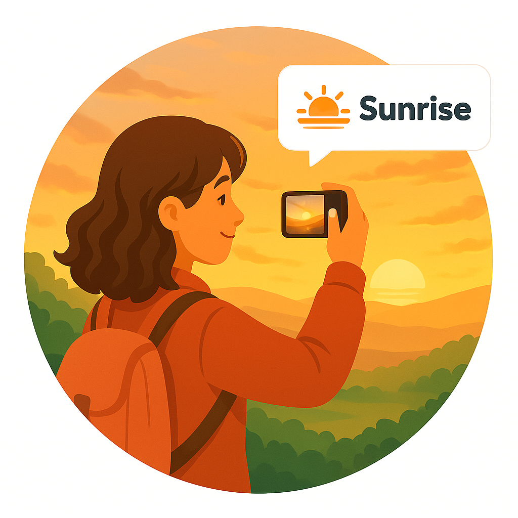 Illustration of a Woman Capturing a Sunrise on Her Phone