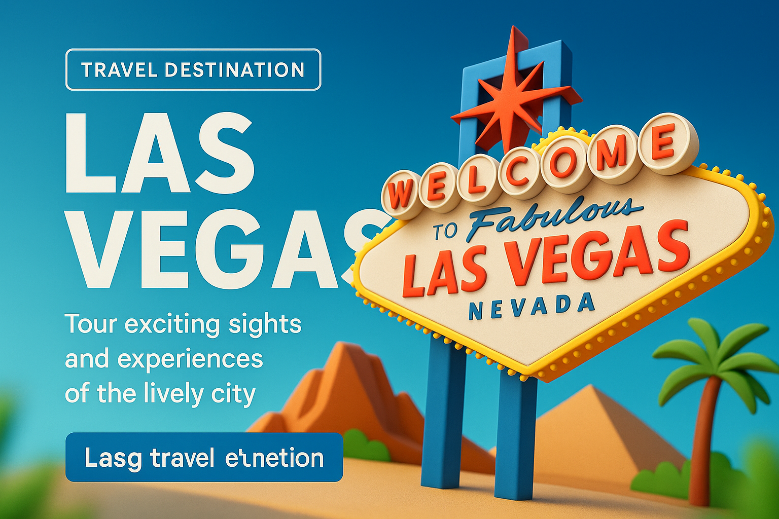 /Collection: /by davooda/Type: PNG/A vibrant illustration showcasing Las Vegas as a premier travel destination with dynamic visuals, highlighting the city's iconic welcome sign and surrounding landscape.