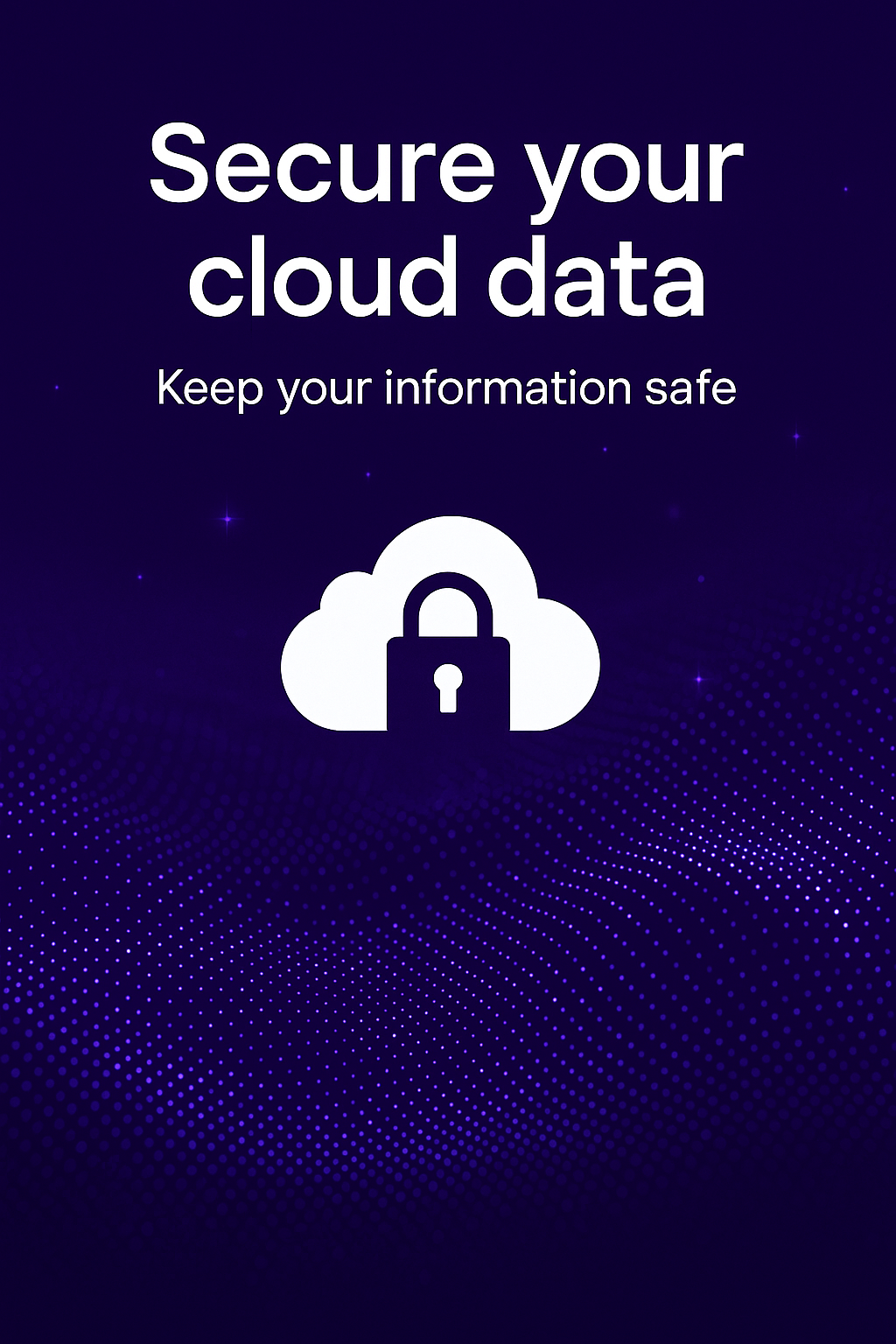 Promotional graphic emphasizing the importance of cloud data security, featuring a cloud and lock icon with a modern, sleek design. Ideal for tech awareness campaigns.