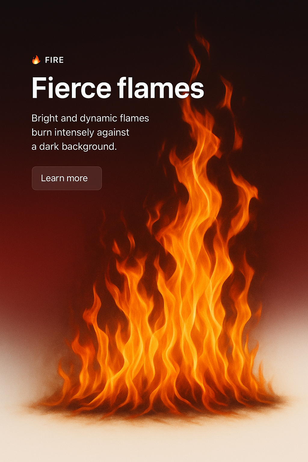 An illustration of fierce, dynamic fire flames set against a dark gradient background. The design is ideal for web use, featuring a clear call to action.