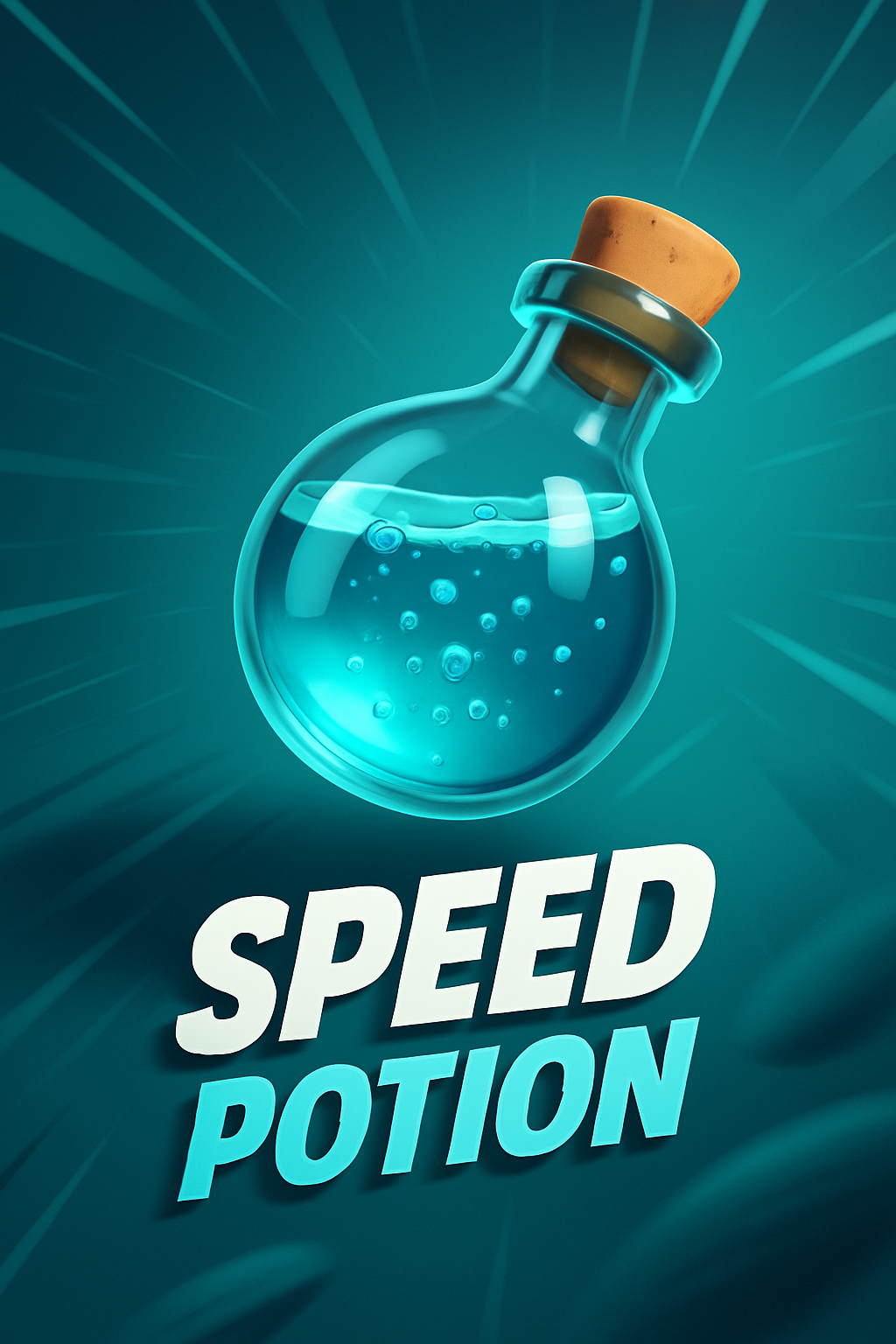/Collection: /by davooda/Type: PNG/A vibrant illustration of a speed potion in a glass vial, with dynamic rays emanating from the center. The title 'SPEED POTION' is prominently displayed in bold, engaging typography against a smooth gradient background.