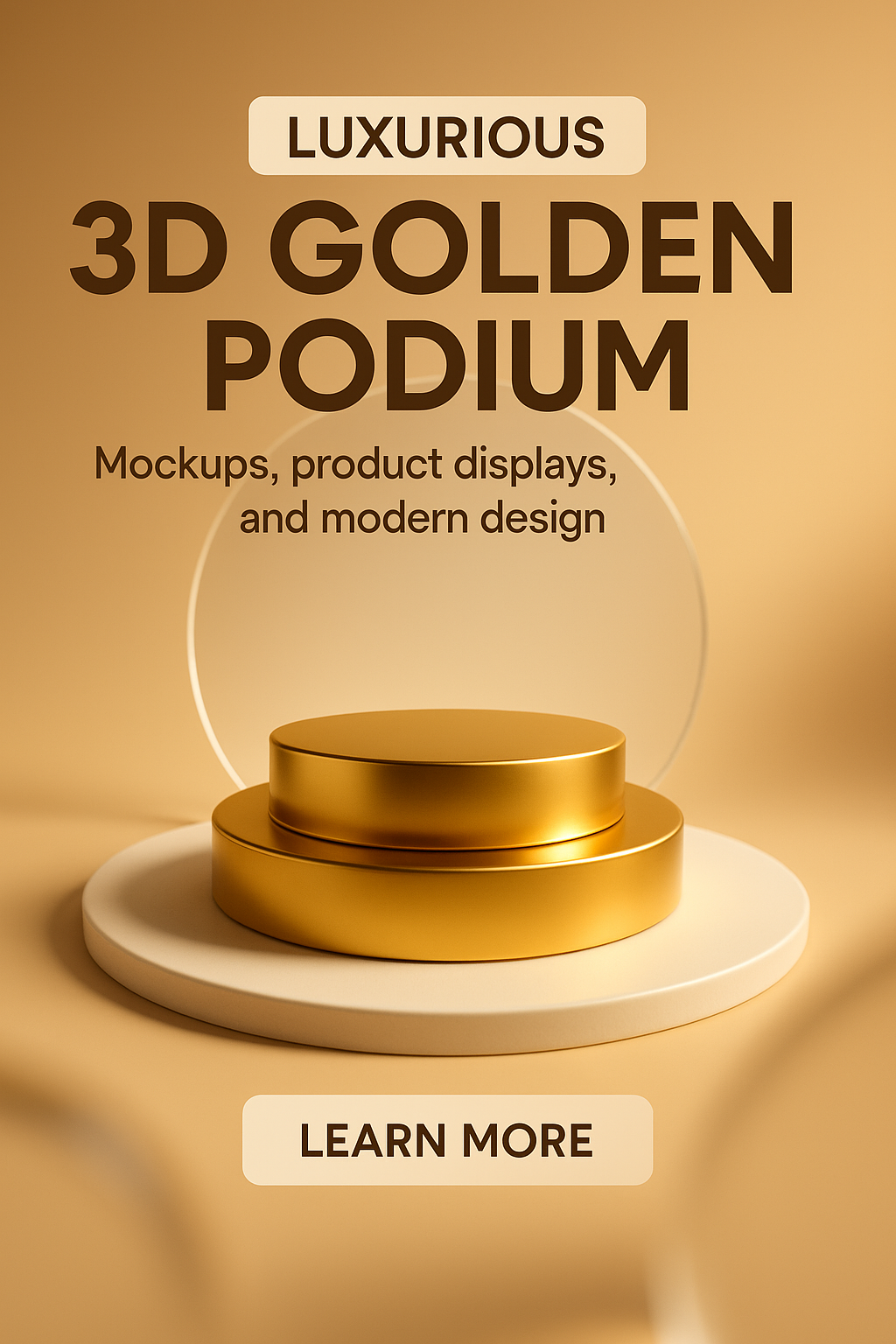 /Collection: /by davooda/Type: PNG/This image features a luxurious 3D golden podium set against a soft golden background, ideal for product displays and mockups. The design is modern and elegant.
